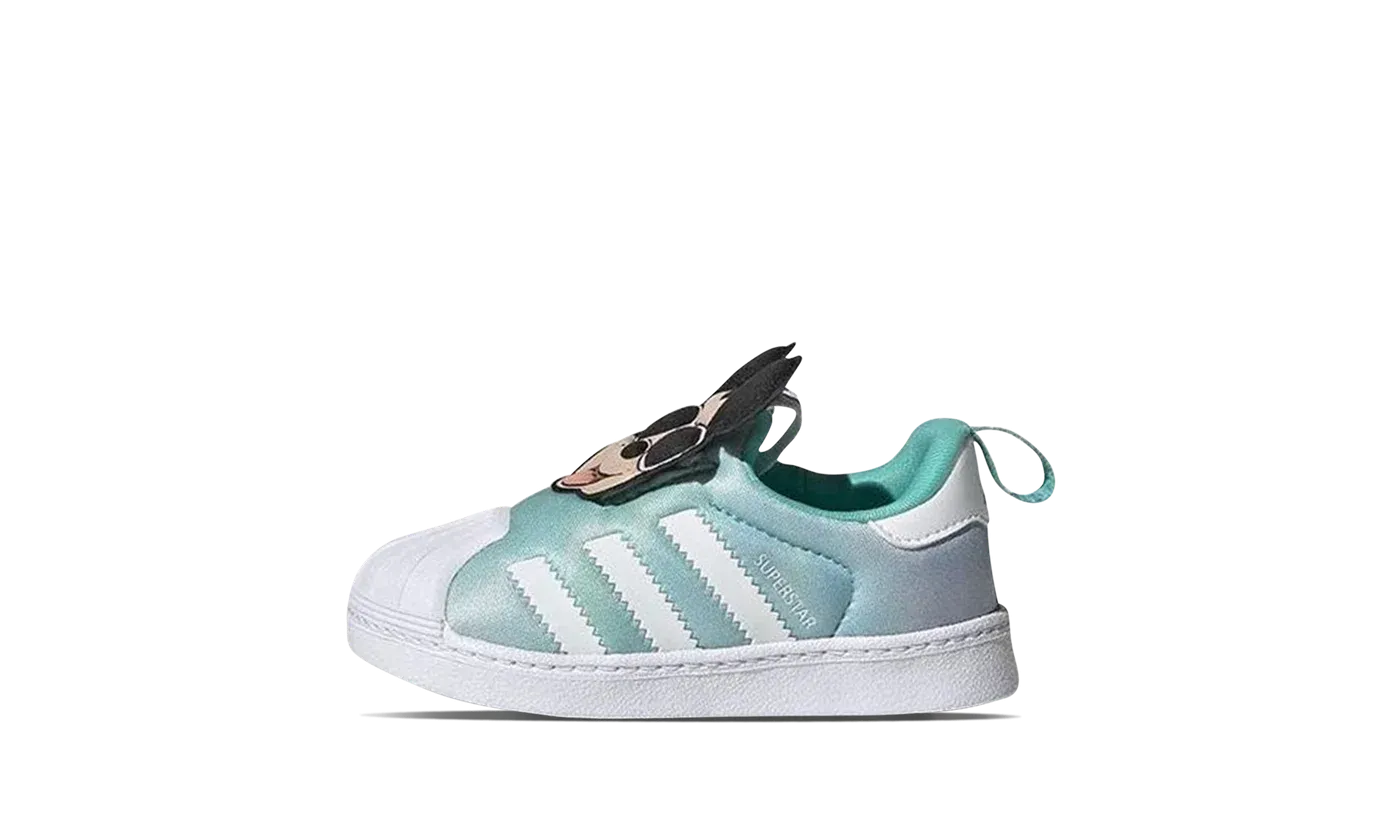 The Superstar 360 TD 'Disney - Mickey Mouse' shoe features a playful design inspired by the iconic Disney character Mickey Mouse, blending classic Adidas Superstar style with unique and charming details perfect for young fans.