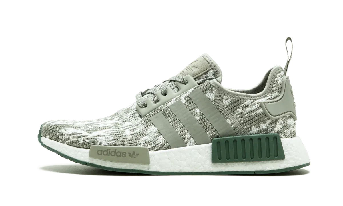 The adidas Originals NMD R1 "Sesame" came out of a collaboration between adidas and Foot Locker. The NMD R1 features a glitch camo pattern in a muted grey color that is accented with silver Three Stripes branding. The midsole plug by the heel and the outsole are both done in a forest green color that complements the upper nicely. The adidas Originals NMD R1 "Sesame" sits atop a comfortable Boost midsole. The result is a sneaker that blends style and technical performance in a way that adidas Originals has become known for.