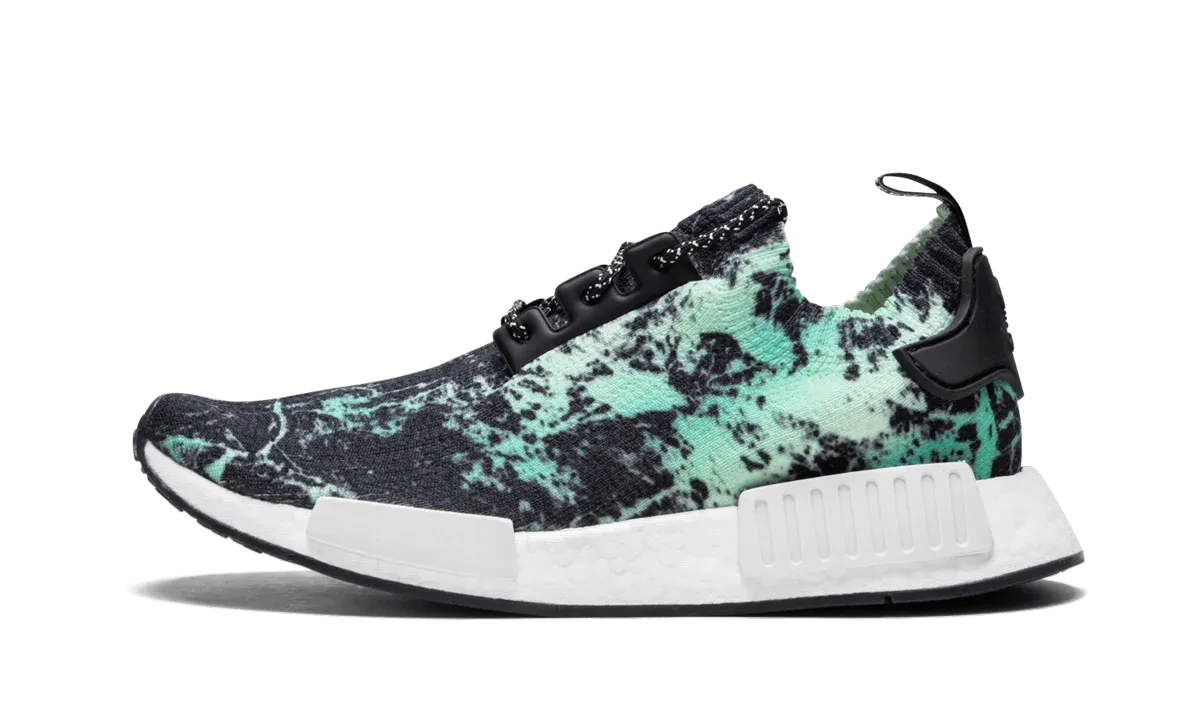 The adidas NMD R1 "Marble Primeknit" is a bold, yet refined edition of the popular silhouette. The Primeknit upper is transformed into a work of art with a unique marble treatment in black and mint green. The colorway opts for no Three Stripe branding on the upper to let the marble print stand alone as the defining feature. Reflective striped laces add the final touch up top, while the midsole bumper inserts are presented in white to match the Boost foam. Released in fall 2018, the adidas NMD R1 "Marble Primeknit" was one of the must-have colorways of the year for many NMD fans.