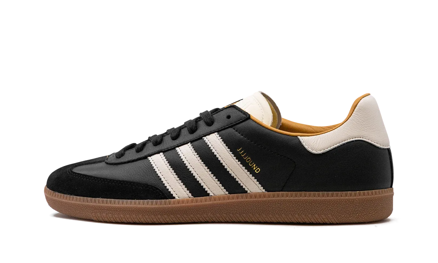 Introducing the Adidas Samba Classic Mig JJJJound - Core Black/Off White-Gum ID8707, a sleek and stylish collaboration between Adidas and JJJJound.