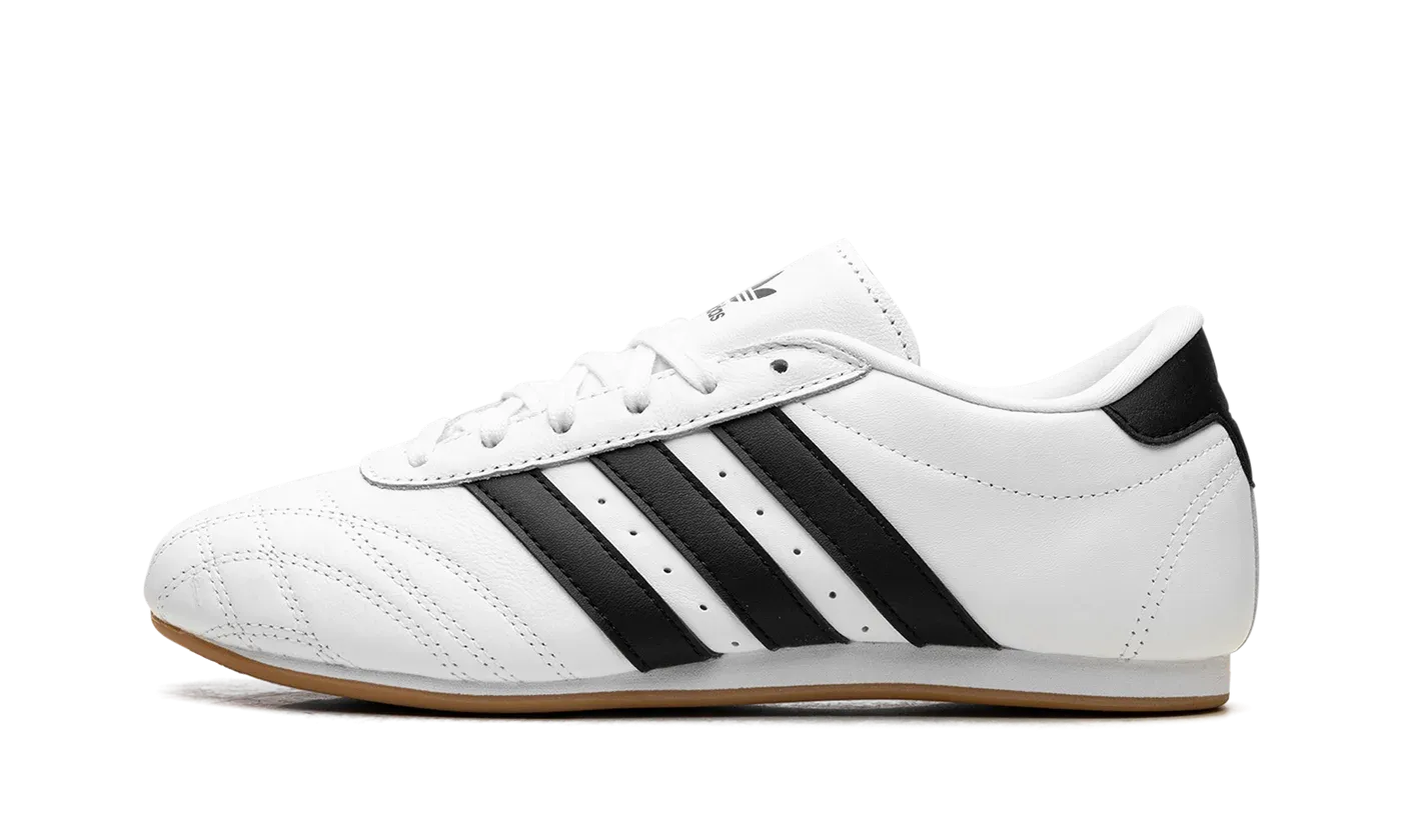 The Adidas Taekwondo WMNS sneaker in the Cloud White Core Black Gum colorway is a sleek, minimalist design inspired by martial arts footwear, tailored for women. Its laceless slip-on construction and clean lines provide an effortlessly stylish look. Featuring a canvas or textile upper for lightweight breathability and comfort, the shoe sits on a thin, flexible gum rubber outsole, offering excellent ground feel and traction. This silhouette is ideal for those seeking a unique, low-profile lifestyle sneaker that emphasizes simplicity and comfort.