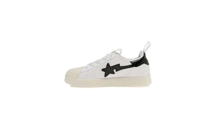 The Superstar 360 PS 'BAPE - White Black' shoe features a classic design with a playful twist, incorporating the iconic A Bathing Ape style in a clean white and black colorway, perfect for young sneaker enthusiasts.Bape - White Black
