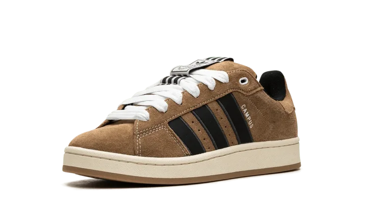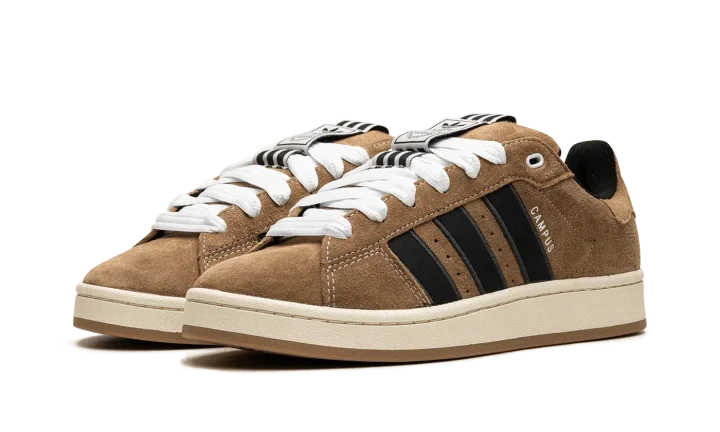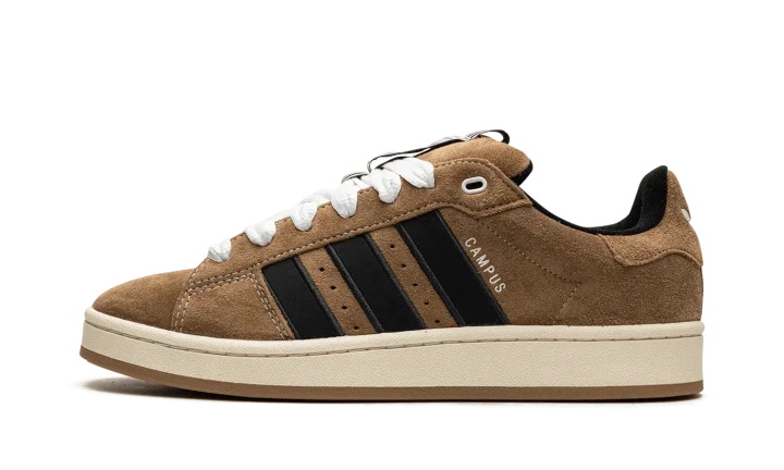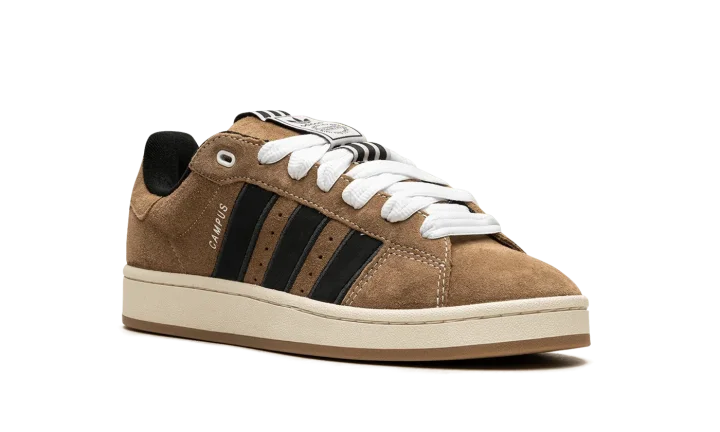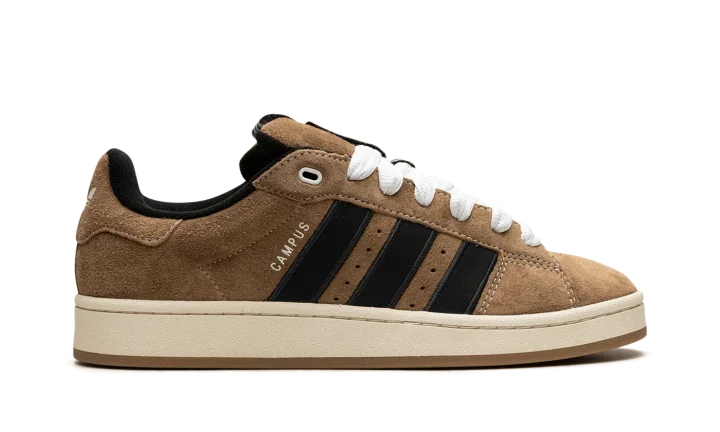 The adidas Campus 00s "YNuK - Brown Desert" is a modified version of lifestyle shoe with design elements inspired by early 2000s-era sneaker aesthetics. From a Y2K-inspired collection that also features an adidas Adimatic Mid among other silhouettes, the Campus 00s "YNuk - Brown Desert" features graphics by Portuguese artist Crude on the insole and a decidedly vintage-looking appearance. The shoe had a brown suede upper with black Three Stripes branding on the sides. Oversized white laces are a nod to skate shoe styling from the early 2000s. Underfoot, an off-white rubber midsole and gum rubber outsole complete the look.