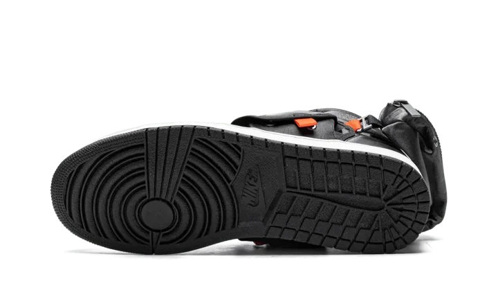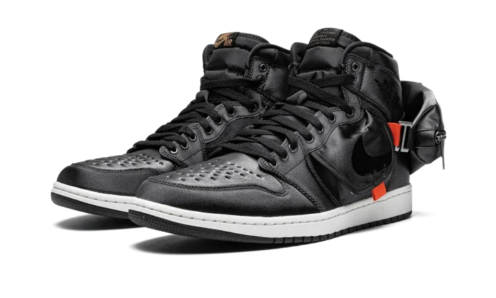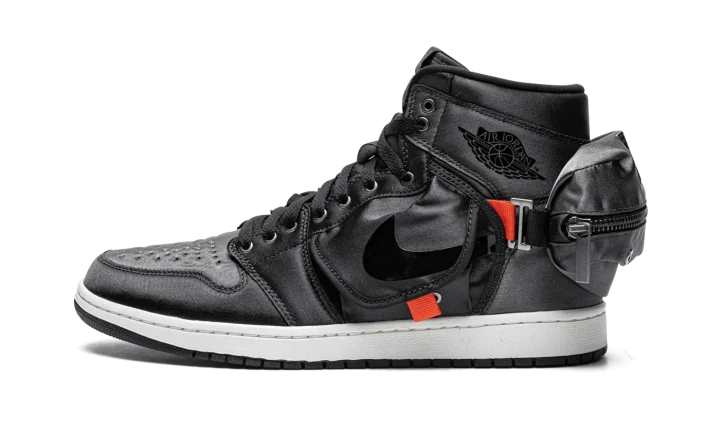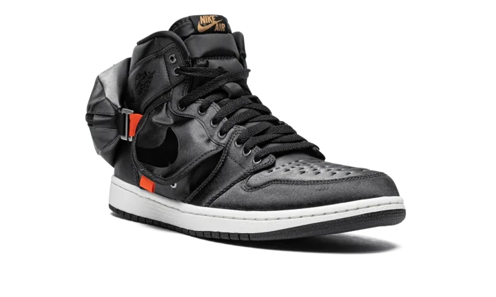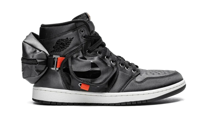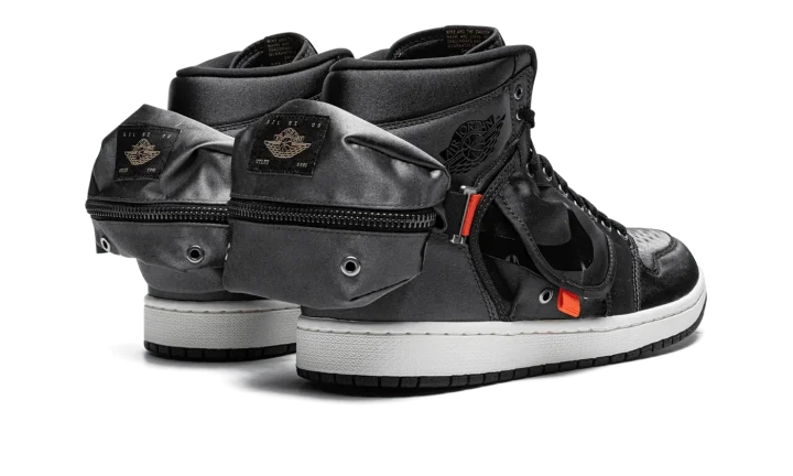 The Air Jordan 1 High "Stash" is a unique version of the iconic basketball shoe that features cargo-pant-like stash pockets on the side and heel. A Spring 2022 release by Jordan Brand, this utilitarian look for the Jordan 1 includes an outdoors-inspired design with flaps on the mid-panel and a large pocket on the back of the shoe. The entire upper is constructed of black nylon. Orange tabs throughout the upper balance the sneaker's monochromatic black appearance. Even with the design modifications, it still features a Swoosh on the sides and a "Wings" logo on the collar—two signature elements of the original Air Jordan 1. Release date: May 3, 2022