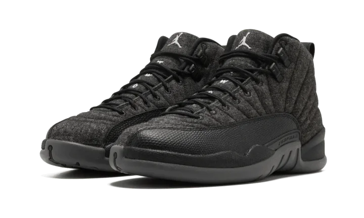 The Air Jordan 12 "Wool" is an October 2016 release that gives Michael Jordan's twelfth signature shoe a cozy makeover for winter. This rugged look for the Air Jordan 12 finds the model's upper reimagined in a premium dark grey wool material for an added layer of warmth during coldest months of the year. The faux lizard leather material on the forefoot and toe are consistent with the original styling of the Air Jordan 12. Jordan Brand adds an embroidered Jumpman and "23" branding to the wool tongue. Similarly, embossed Jumpman detailing appears on the top lace loops and on the black nylon overlay on the back of the shoe. Additionally "23" and Jumpman branding can be found on the heel and lateral side of the midsole, respectively. Release date: October 1, 2016.