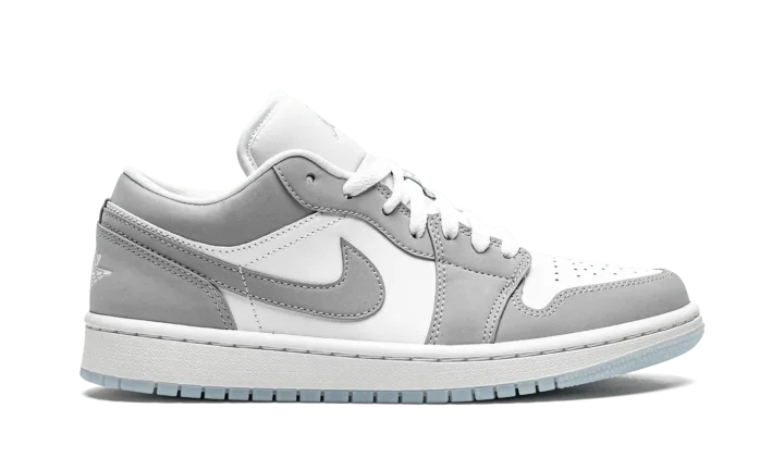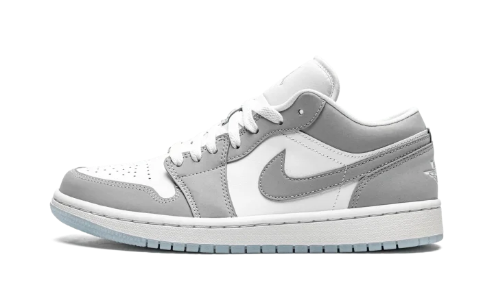 The Women's Air Jordan 1 Low "White/Wolf Grey" is a timeless, low-contrast colorway of the women's version of Michael Jordan's iconic first signature shoe. The model's versatile low-top offshoot was an original offering by Nike along with the high-top Air Jordan 1 in 1985 and remains one of the most popular sneakers on the planet decades after its original release. Here, on the "White/Wolf Grey" colorway, white leather appears on the perforated toe and mid-panel. Contrasting Wolf Grey synthetic nubuck graces the forefoot, eyelets, collar, heel, and Swoosh branding. A white "Wings" logo can be found on the back of the shoe and a Wolf Grey Jumpman is embroidered on the white nylon tongue. Embroidered "23" branding resides on the grey lace overlay incorporated into the design of the white laces on the tongue. A white midsole and contrasting Aluminum-colored rubber outsole complete the look of this easy-wearing look for the Women's Air Jordan 1 Low.