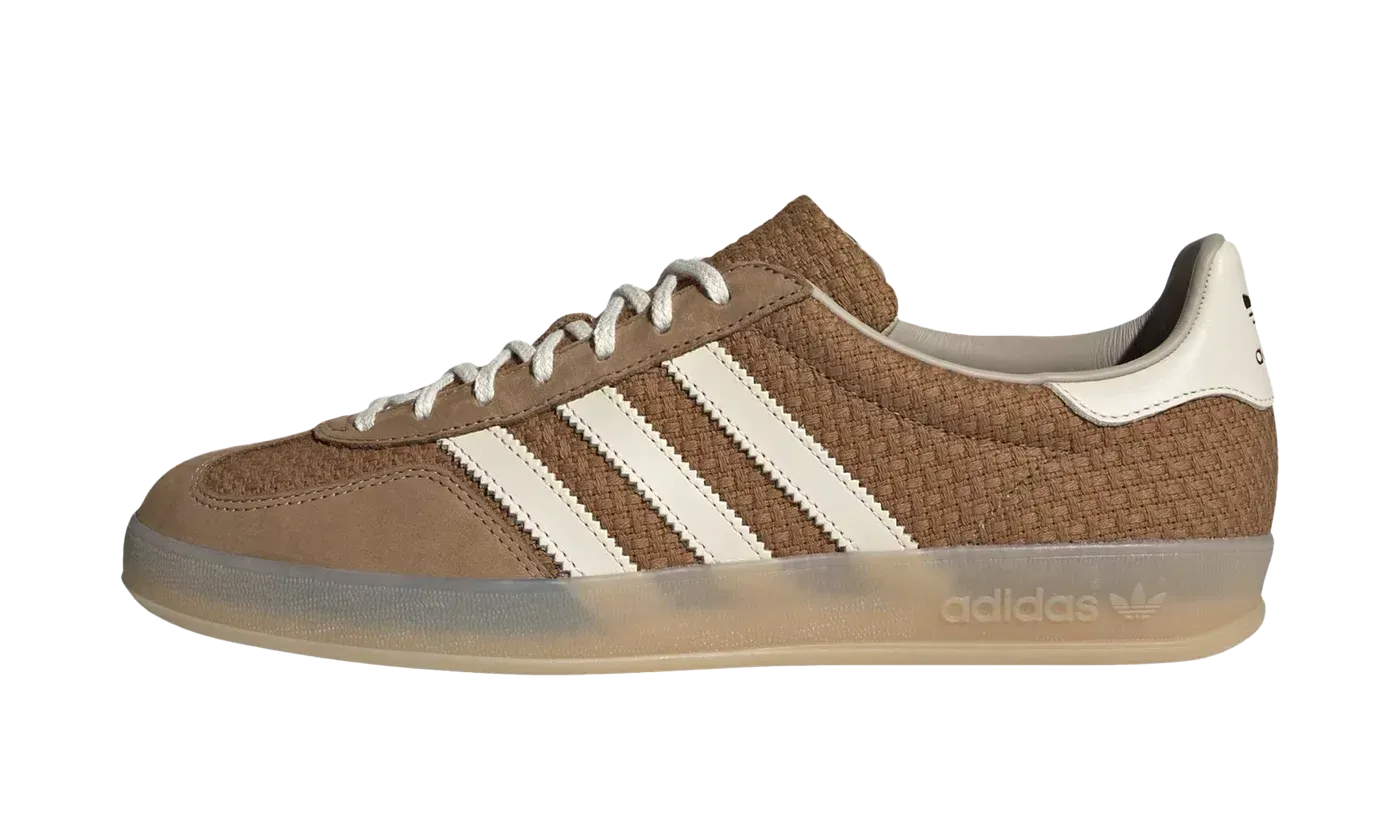 Slip into a classic with the Adidas Gazelle Indoor "Brown Desert / Wonder White." This iconic lifestyle shoe brings a fresh, earthy twist to the beloved silhouette, featuring rich Brown Desert suede paired with crisp Wonder White accents on the signature Three Stripes. The defining feature is the slightly translucent, gum-colored sole, which provides excellent grip and a vintage touch. Perfect for adding a sophisticated, retro vibe to your everyday casual wear.