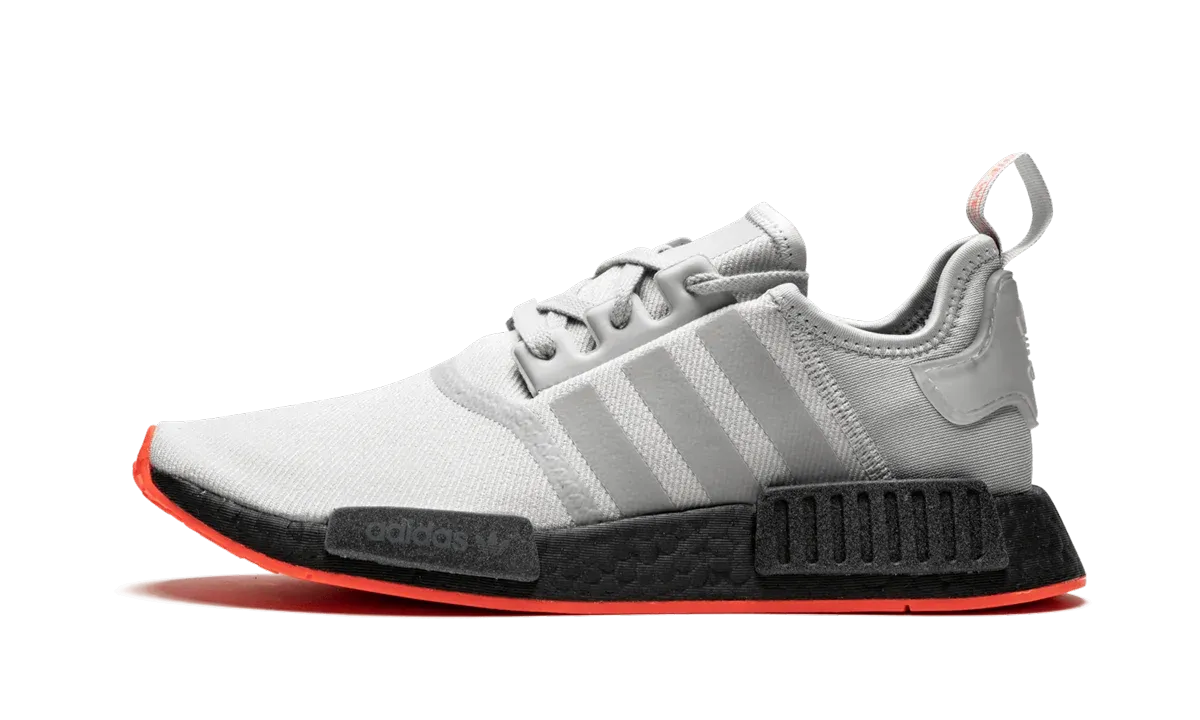The adidas NMD R1 has grown to become one of the most popular lifestyle models in the adidas catalog. This colorway originally released in November 2018. It features a grey knit upper with tonal overlays used for the Three Stripes on each side panel and tongue tag. Additional solar red adidas branding is stamped on the medial side panel. Solar red also accentuates the heel tab and rubber outsole. The adidas NMD R1 sits atop a black Boost midsole with matching EVA plug inserts.