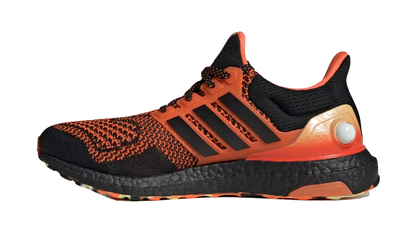 Level up your look with the Ultra Boost 'Fortnite Fishstick' running shoe! Inspired by the quirky in-game character, this sneaker features a striking Core Black and Impact Orange Primeknit upper with playful yellow accents. Experience all-day comfort with the responsive Boost midsole, perfect for both long runs and epic gaming sessions. Subtle but unmistakable Fishstick eyes peek out from the heel, making this a fun, collectible piece for any dedicated gamer and sneakerhead.