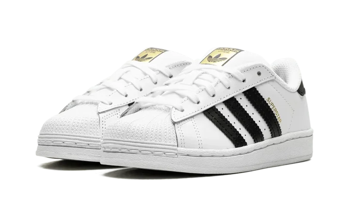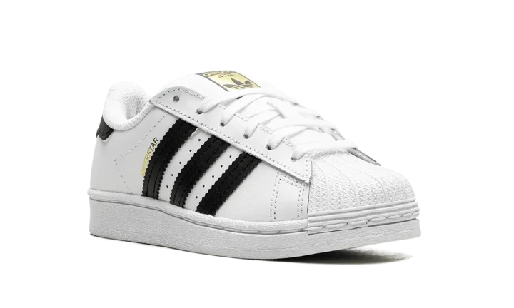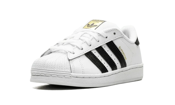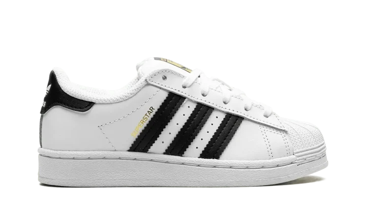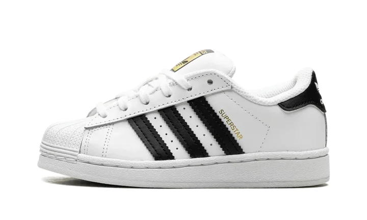 The Superstar PS 'Black and White' shoe features a classic two-tone design, making it a versatile and timeless addition to any sneaker collection.Black and White