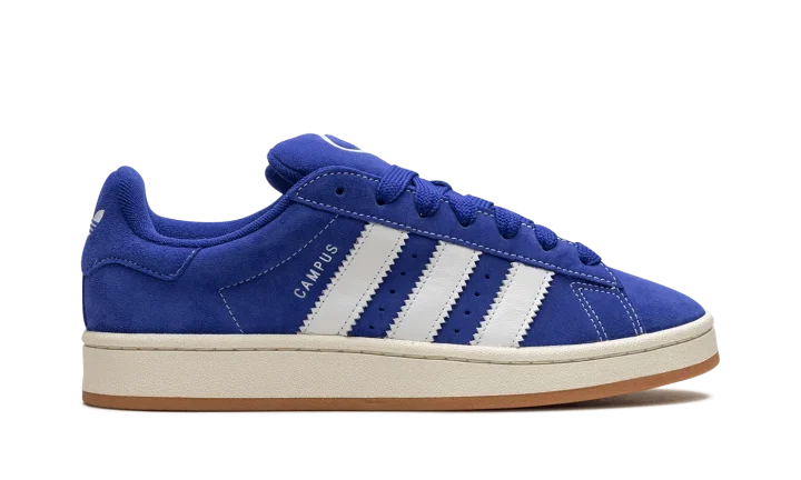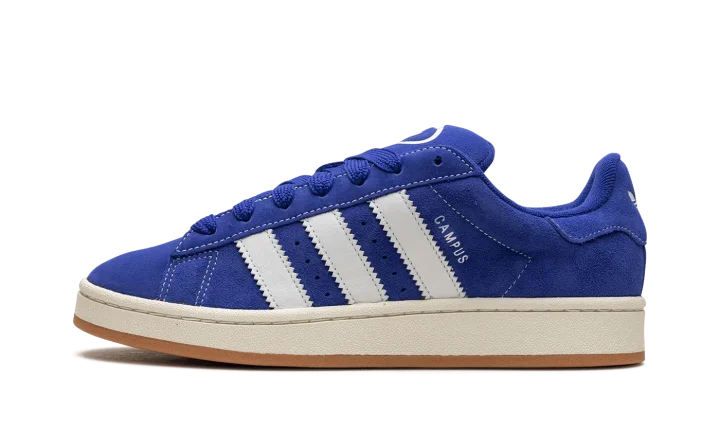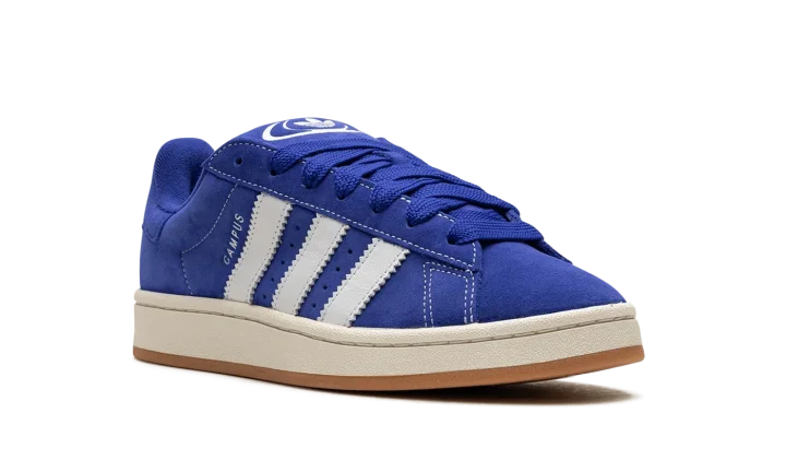 The adidas Campus 00s "Semi Lucid Blue" is a blue-based colorway of the classic shoe with a skate-inspired aesthetic. The Campus 00s is a retro shoe with a design inspired by "puffy" Y2K-era skate shoes. Adidas designs the colorway available here in a blue suede construction with white contrast stitching. Oversized white leather Three Stripes branding is seen on the sides. "Campus" branding appears on the lateral side of the mid-panel next to the classic adidas logo detailing. The brand's signature Trefoil logo is located on the heel and on the tongue in white. The shoe's off-white midsole is mounted on a gum rubber outsole with a herringbone pattern that provides grip whether on or off a skateboard.