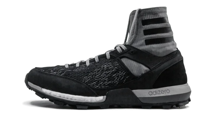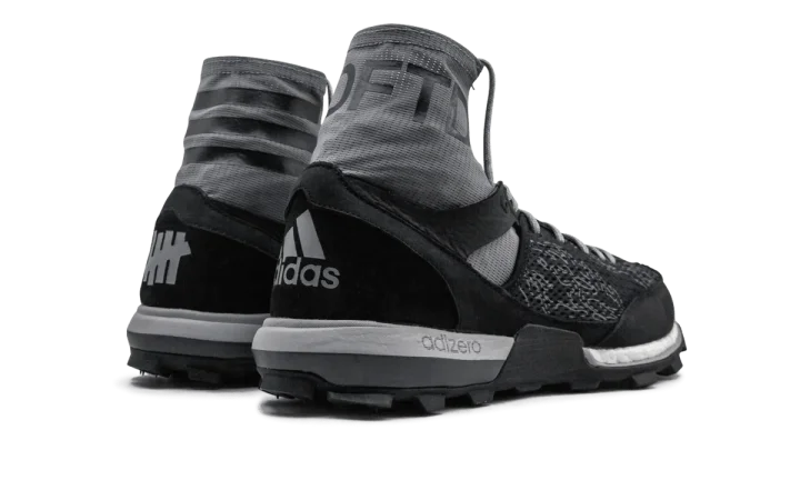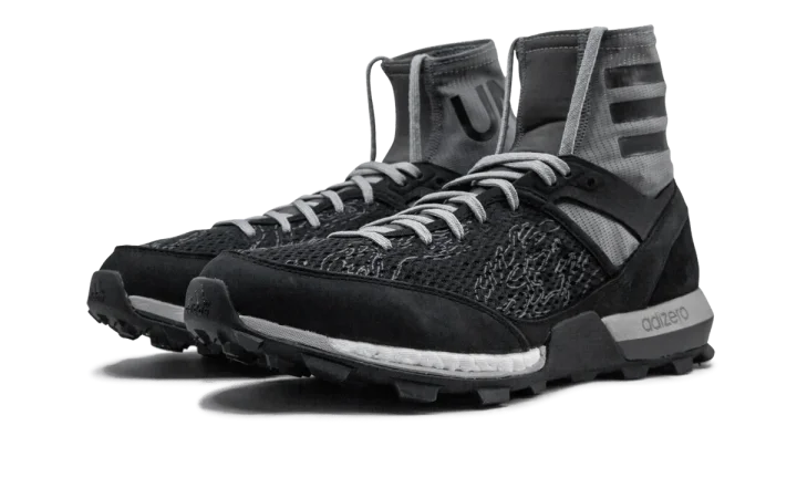 The Undefeated x adidas adizero XT Boost is part of an expansive collaborative apparel and footwear collection between the two brands. Sporting a greyscale color scheme, the radical-looking shoe is built with a multi-textile upper in shades of black and grey. A printed pattern appears at the front of the shoe, while enlarged UNDFTD and adidas branding alternate on the ultra-high ankle and heel. The lifestyle sneaker features a Boost sole with large teeth on the outsole for enhanced grip. The Undefeated x adidas adizero XT Boost was released during the Fall/Winter 2018 season.