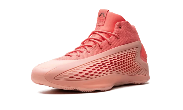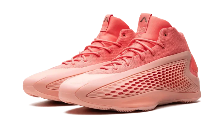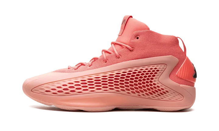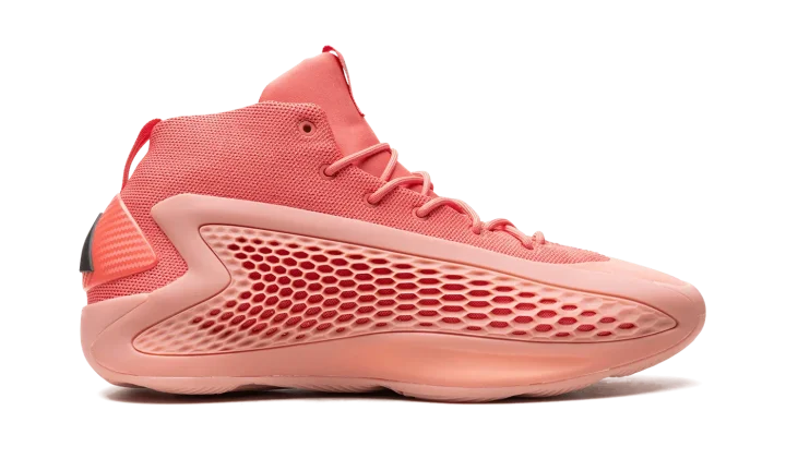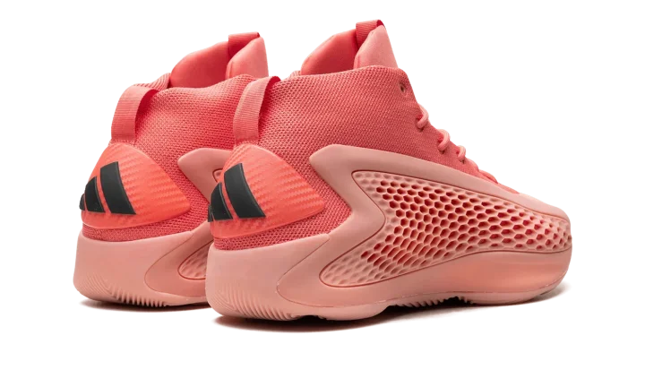 The adidas AE1 "Coral" is a monochromatic pink colorway of Anthony Edwards' first signature shoe with adidas Basketball. A spring and summer-inspired look with its bright appearance, the upper features a Coral-colored knit upper paired with a TPU "cage" in a honeycomb pattern in a slightly lighter shade of Coral. Edwards' signature branding appears on the tongue tag and adidas Three Stripes branding can be found on the heel. Underfoot, the midsole is designed with a combination of adidas's Boost and Lightstrike cushioning for superior performance and energy return.