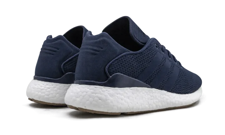 The Busenitz x adidas PureBoost Primeknit is a hybrid design that combines one of the brand's most popular shoes with Boost technology to introduce a dynamic combination. Dennis Busenitz, one of adidas' poster boy skaters, takes this look to the next level with modern upgrades, including a Boost sole and Primeknit upper for maximum flexibility and comfort. The model is dressed in a navy blue colorway with signature Three Stripe branding. The white Boost midsole and gum rubber outsole provide grip and support on and off the board