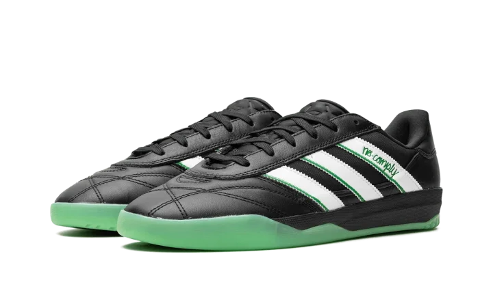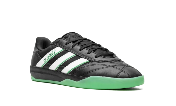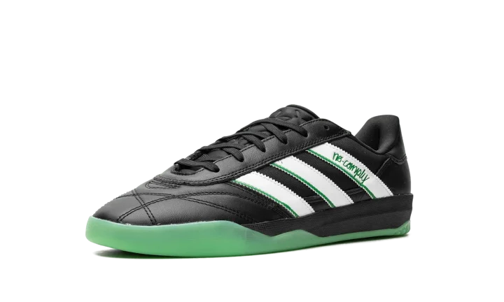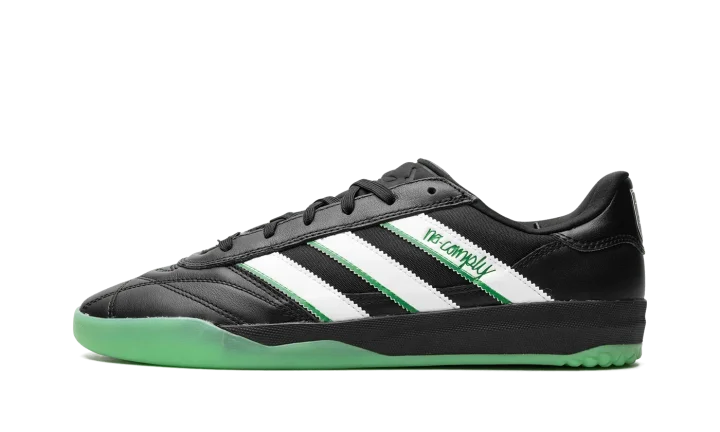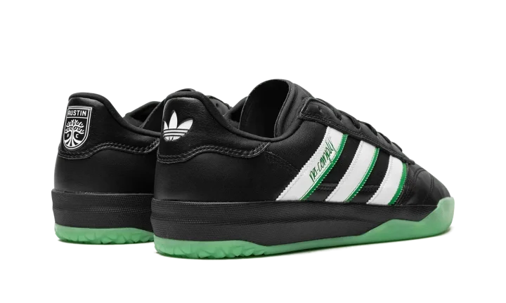 The No Comply x Austin FC x adidas Copa Premiere "Core Black/Cloud White" is a collaboration by the Austin, Texas based skate shop, the Major League Soccer team, and adidas on a colorway of the soccer shoe inspired by skateboarding and soccer aesthetics. The upper features a Core Black leather construction with white leather Three Stripes branding with Real Green-colored "No Comply" detailing on the lateral side. "Austin FC" and an adidas Trefoil logo can be seen on the left and right heel, respectively. Underfoot, the black midsole is paired with a semi-translucent green outsole. Released date: August 19, 2023No Comply x Austin FC