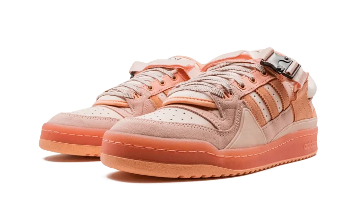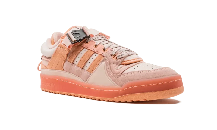 The Bad Bunny x adidas Forum Buckle Low "Easter Egg" is the second collaboration between the Puerto Rican musician and adidas on the retro basketball shoe. Bad Bunny, a Grammy Award winning artist and part-time WWE performer, teamed up with adidas in March 2021 to release "The First Cafe" colorway of the Forum Buckle Low. Inspired by Bad Bunny's appreciation for a morning cup of coffee, the mocha-looking shoe created quite a buzz in the sneaker community. Just as popular, the "Easter Egg" colorway in pink references Easter with its use of pastel colors. A combination of suede and leather panels in various pink shades can be found on the forefoot, toe, collar, and heel. The Forum's signature Three Stripes branding is finished off in a park pink-orange suede material that matches the shade of suede used on the lateral side of the heel. A plush pink leather construction forms the base of the shoe. Two overlapping and interchangeable tongues allows for a customizable look. A pink nylon ankle strap with "YO VISTO ASI," which translates to "I dress like this" from Spanish, is embroidered under the strap. A lace toggle and stacked heel design on the back of the shoe provide a premium aesthetic to the second-ever collaboration between Bad Bunny and adidas.