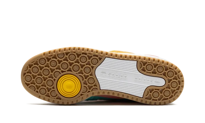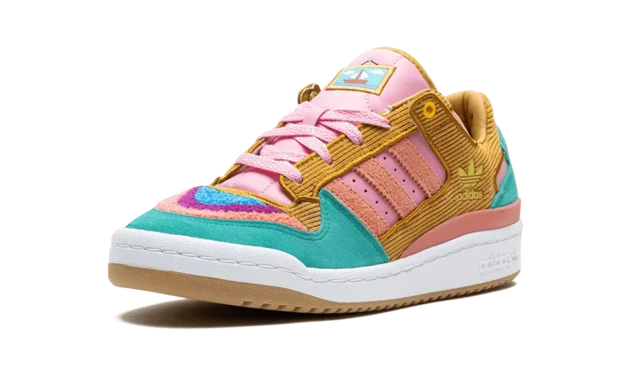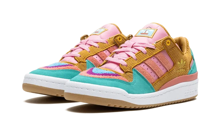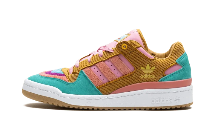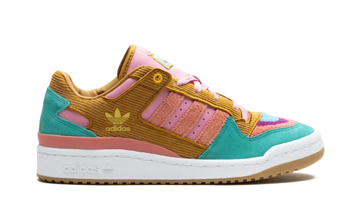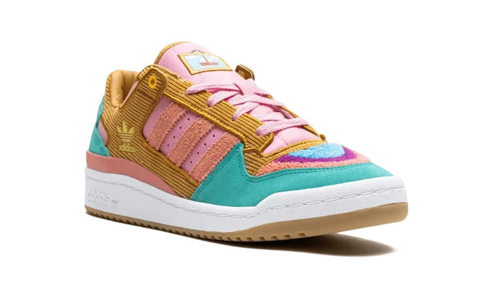 The Simpsons x adidas Forum Low CL "Living Room" is a collaboration between the popular television series and adidas on a colorway of the retro sneaker inspired by the family's living room. Serving as one of the most iconic and recognizable television sets in history, the Simpson's living room is immortalized on this Forum Low CL. The shoe features pink accenting on the tongue, laces, and midfoot inspired by the color of the living room's walls. The various chenille detailing found on the shoe is inspired by the room's rug. The sailboat painting that adorns the wall of the room can be found on the tongue. Other details include overlays on the eyelets and supportive X-Strap in a corduroy finish that nods to the room's couch. A graphic of the family's greyhound, Santa's Little Helper, appears on the heel.