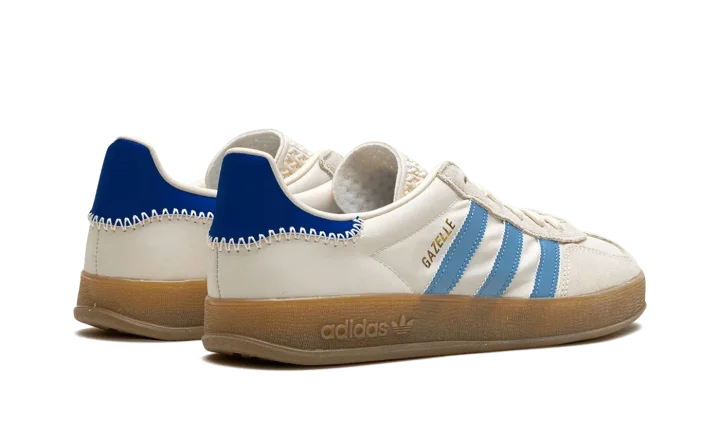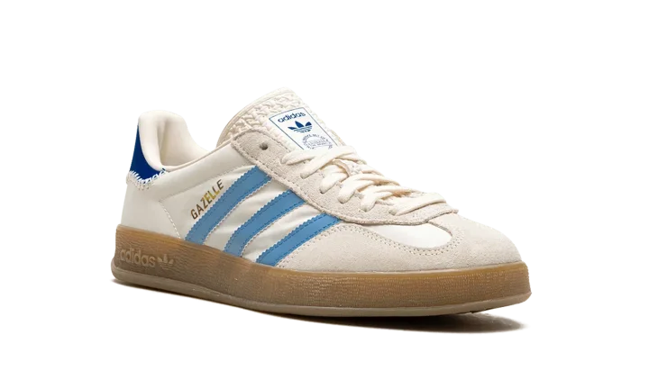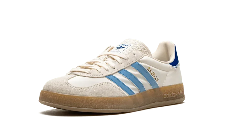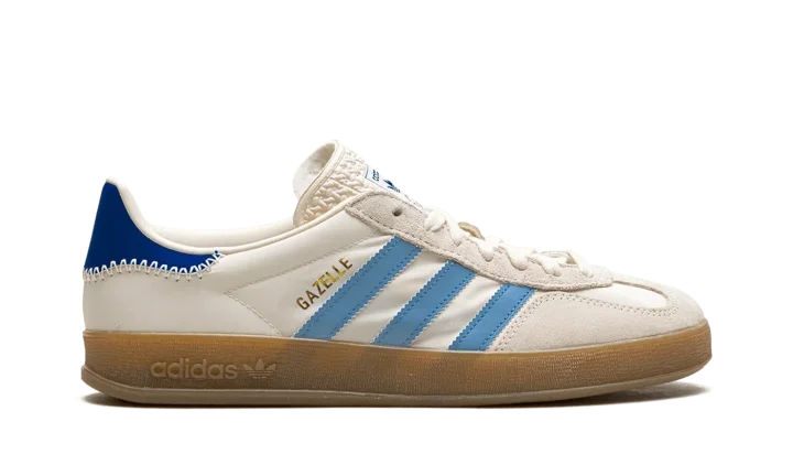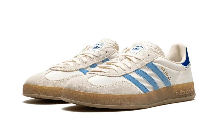 Step into a vibrant aesthetic with the Adidas Gazelle Indoor "Off-White / Clear Sky". This celebrated sneaker features a soft Off-White suede upper complemented by serene Clear Sky blue accents and a classic gum sole. It delivers a comfortable fit and a versatile look that's perfect for making a sophisticated statement every day.
