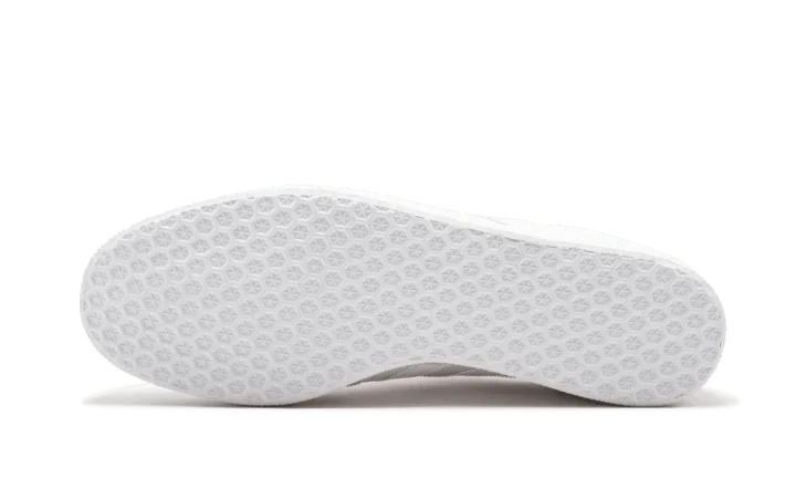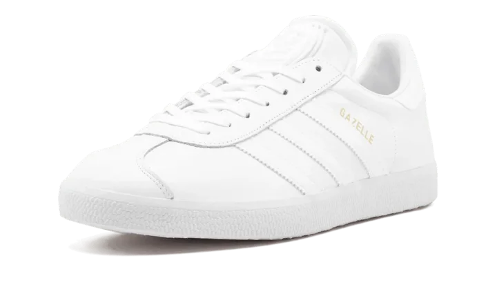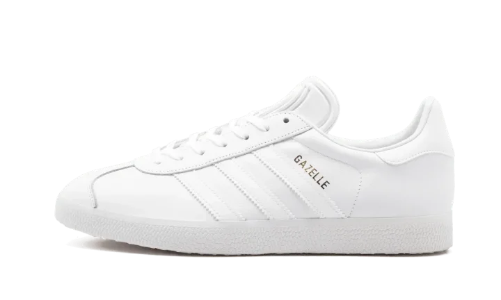 The adidas Gazelle "Triple White" is a monochromatic white colorway of the retro sneaker. This versatile colorway of the popular casual shoe by adidas features a white leather construction with white leather Three Stripes branding on either side. Gold foil "Gazelle" text can be found on the lateral side of the mid-panel, while a classic adidas Trefoil logo is debossed on the tongue. Underfoot, a white rubber sole completes the pristine look.