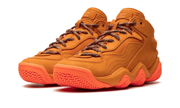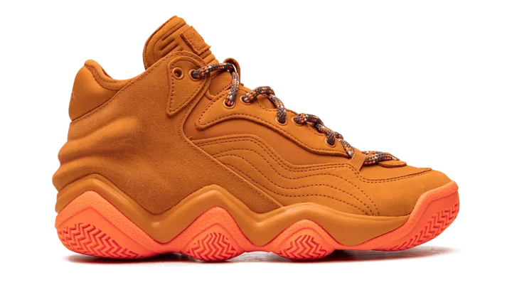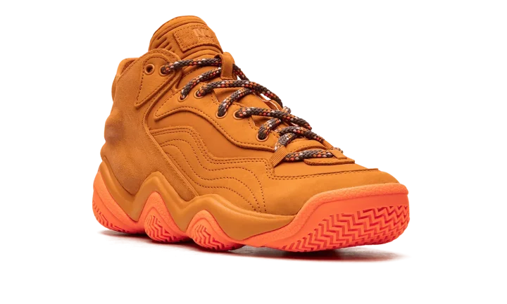 The Ivy Park x adidas TT2000 "Orange" is a collaboration between Beyonce's sportswear line and adidas on an all-orange colorway of the retro basketball shoe. Since debuting her Ivy Park partnership with adidas in 2020, Beyonce has gone on to put her signature spin on several great adidas sneakers, including the adidas TT2000, otherwise known as the adidas Top Ten 2000. The shoe features a Focus Orange suede upper with tonal nubuck and neoprene elements on the toe and collar, respectively. The knit, rope-style laces feature hues of brown, orange, and white. Dual "Ivy Park" and adidas branding lands on the tongue.