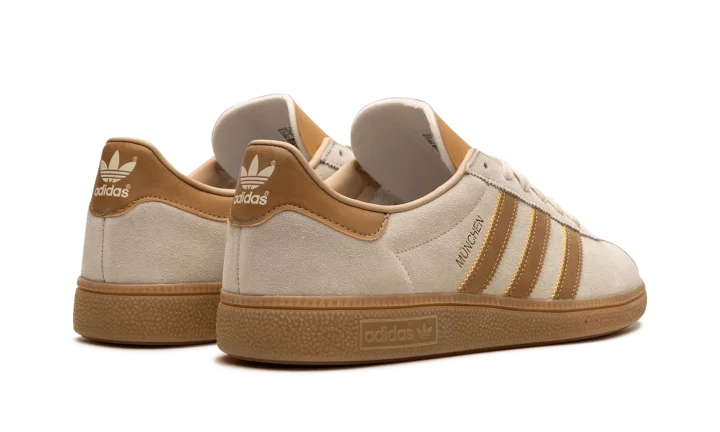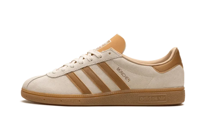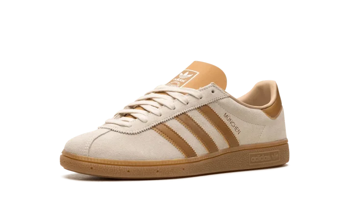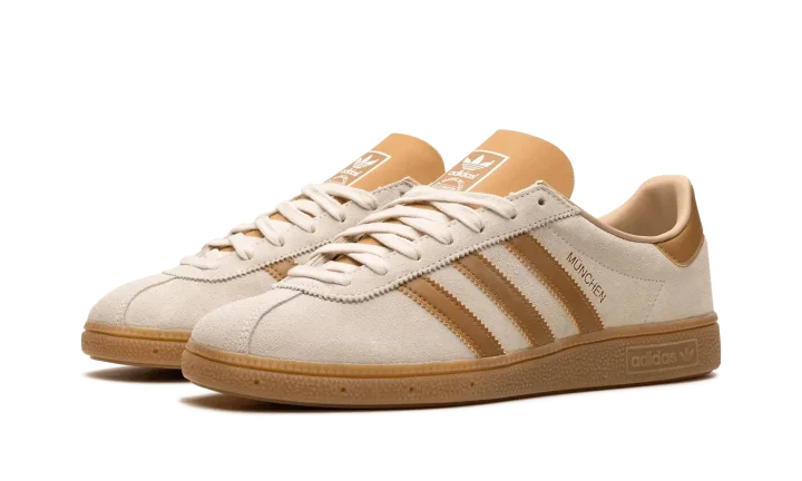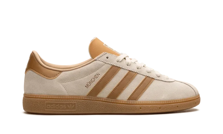 adidas Munchen "Cream White/Mesa" is a colorway of the retro sneaker with a versatile look. The adidas Munchen was originally released in the 1970s as a multi-functional training shoe before it was revived as a casual sneaker in collaboration with Japanese retailer BILLY's in the present day. On the "Cream White/Mesa" colorway, the shoe has a Cream White suede construction, with Mesa-colored Three Stripes detailing. A gold "Munchen" logo appears on the lateral side of the mid-panel. Classic adidas Trefoil branding appears on the Mesa-colored leather heel and on the tongue. Underfoot, a textured gum sole completes the look.
