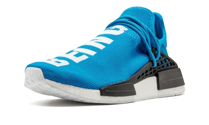 Part of the initial release of the Pharrell x adidas NMD Human Race, this bright blue sneaker helped kick off a craze for the silhouette in 2016. The eye-catching edition has "Human" stitched across the top of the left shoe, and "Being" stitched across the top of the right.