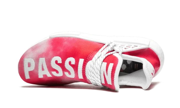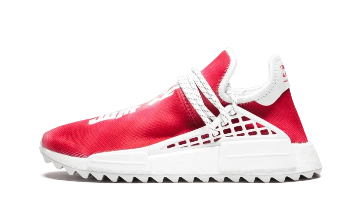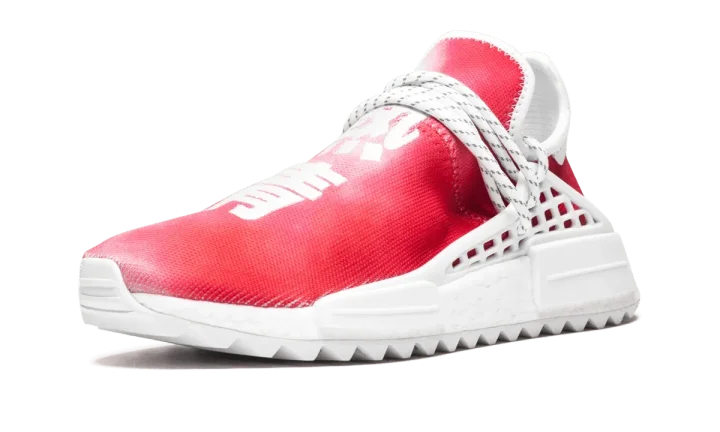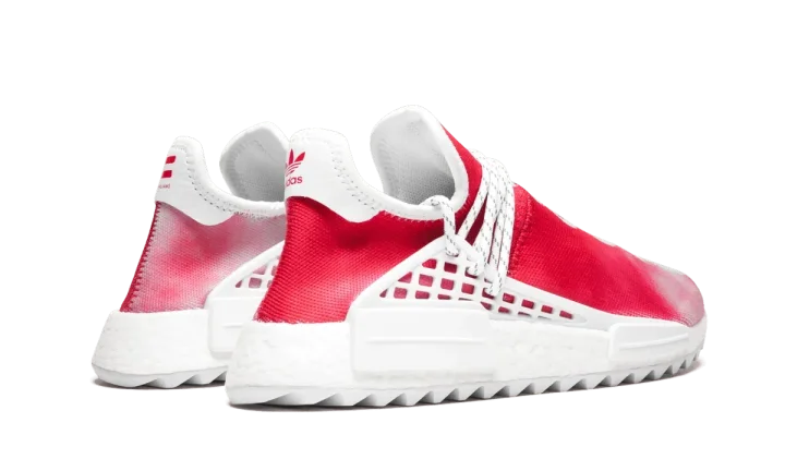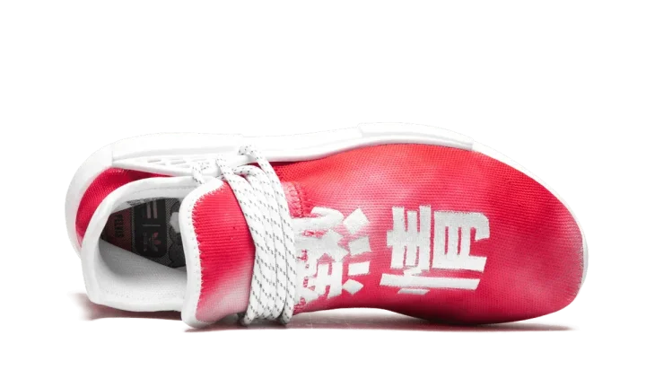 The Pharrell x adidas NMD Hu Trail "China Exclusive" debuted in May 2018. Released only in China, this colorway features a radiant red tie-dye upper inspired by the concept of yin and yang. Each sneaker in the pack represents one of the four natural elements. This blazing red edition is inspired by fire. The embroidered text across the top of each shoe says "Passion" in English and Chinese.