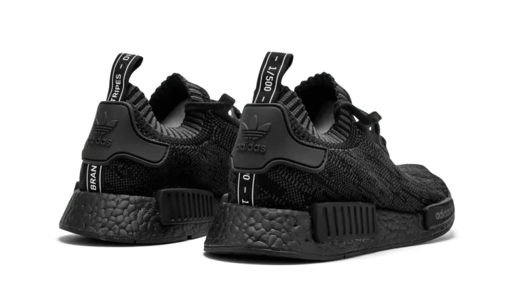 The adidas NMD "Pitch Black" is an unreleased friends and family design that was seeded to special partners and influencers in 2016. Limited to only 500 pairs, the monochromatic knit-based sneaker is one of the most limited NMD models in existence. The all-black-everything upper includes black Primeknit base, laces, eyelets, pull tab, which features a "1/500" numbering in white that differentiates itself from future releases. Subtle onyx contrasting covers the EVA notches on the midsole. A cushy Boost sole with black traction outsole completes the look of this rare adidas NMD.