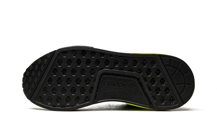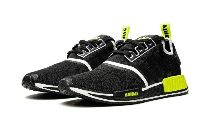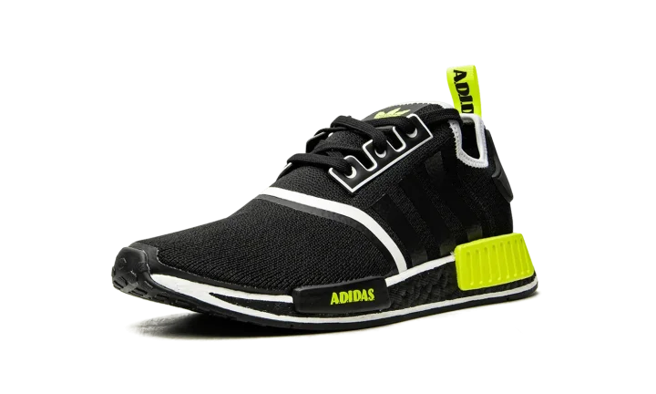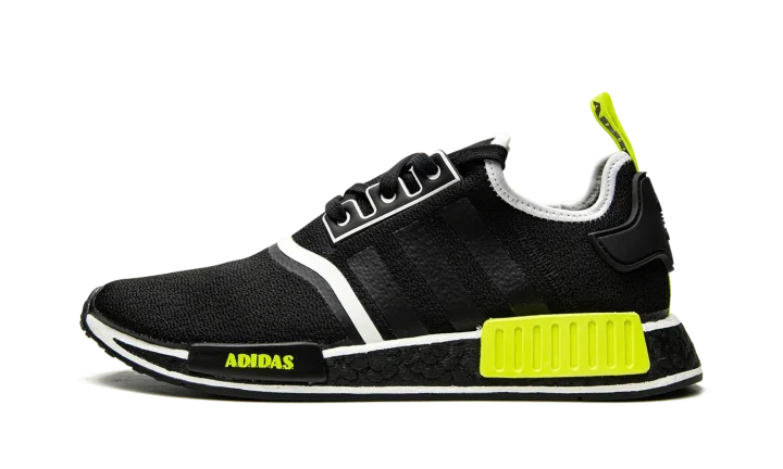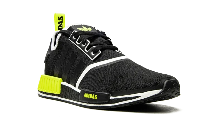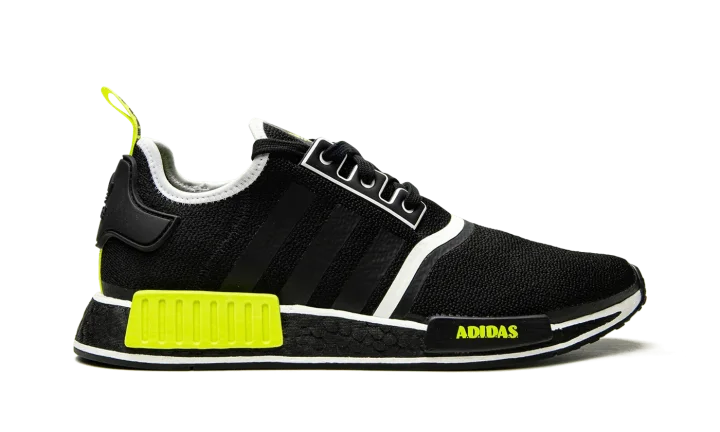 The adidas NMD_R1 has maintained its popularity after several different versions of the sneaker have been released since 2015. Offering lightweight comfort, the soft Primeknit upper comes in black, along with blacked-out Three Stripes taping and a tonal, logo-embossed rubber heel tab at the rear. White accenting contrasts along the collar, forefoot, top of the midsole, and lacing system, while bright yellow is seen on the heel strip and signature midsole "plugs" (one of which features a yellow a.