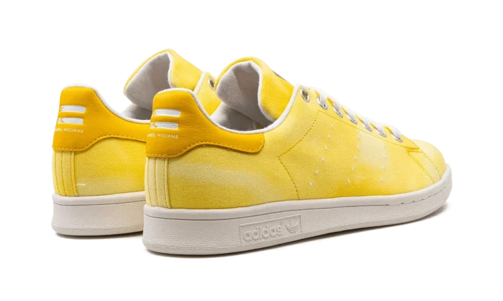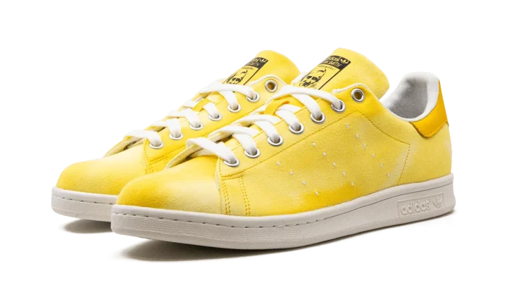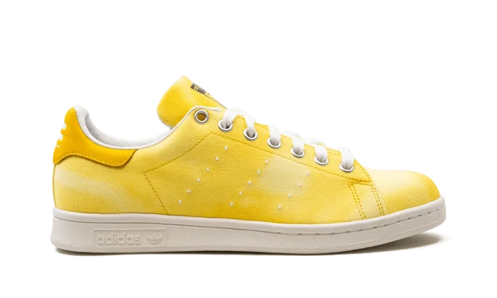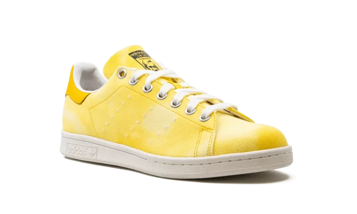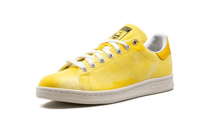 The Pharrell Williams x adidas Stan Smith Hu "Holi" is inspired by the colorful Hindu festival of Holi. Typically known for its clean white base, the Stan Smith silhouette is redone with a dye treatment to symbolize the powder used during celebrations of the festival. The unique coloring process guarantees no two sneakers are alike. This style comes in bright yellow, while the laces, sole, and sockliner provide contrast in clean white. The Pharrell Williams x adidas Stan Smith Hu "Holi" was launched as part of a collection that also carried red, blue, and green primary colors.
