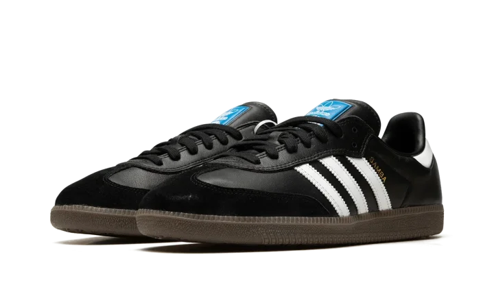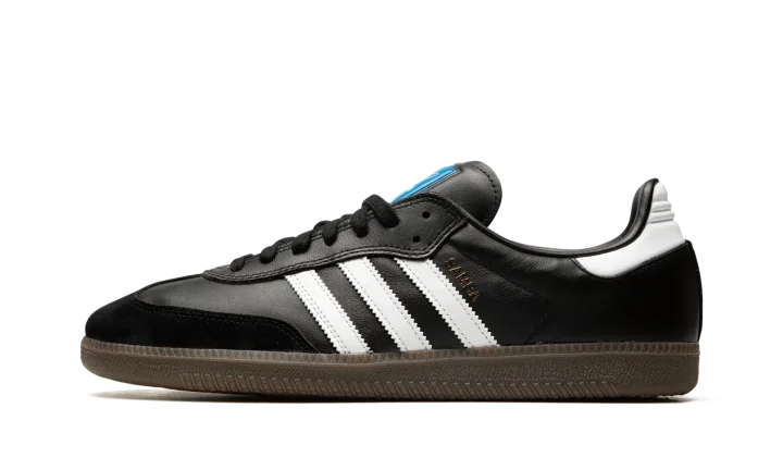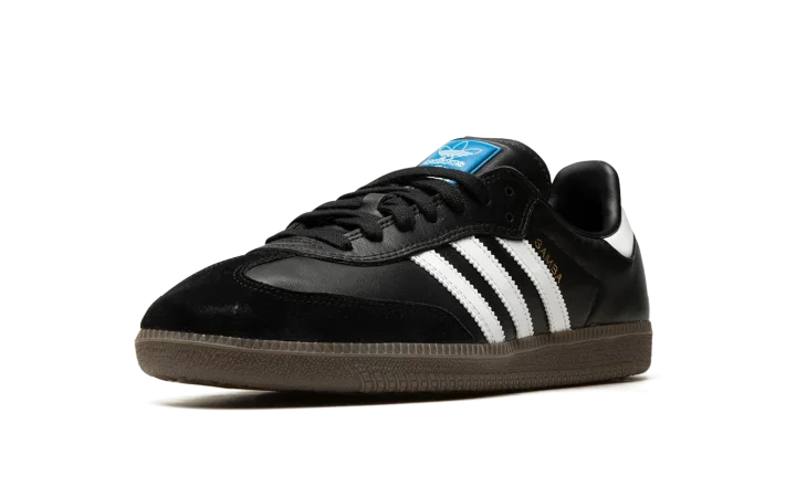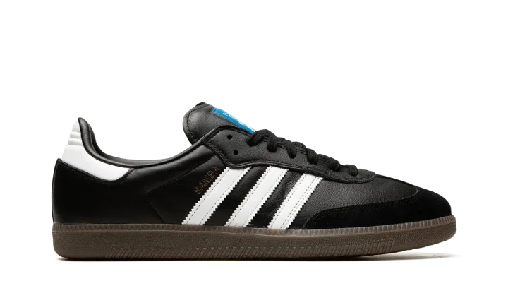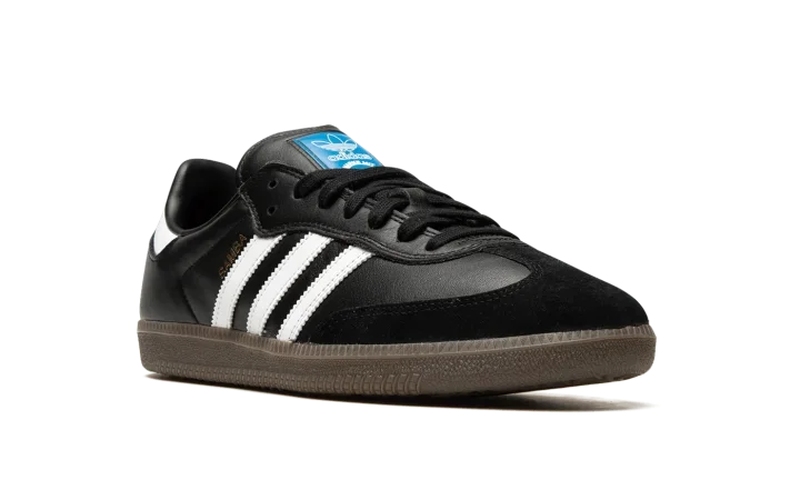 The adidas Samba ADV "Black/White" is the iconic black-and-white colorway of the retro sneaker updated with extra padding and other technology for skateboarding performance. In the "Black/White" colorway, the model features a black leather upper with tonal suede on the toe. White Three Stripes and gold "Samba" branding appear on the side. An adidas Samba ADV graphic is seen on the tongue. A dark gum rubber sole completes the look.