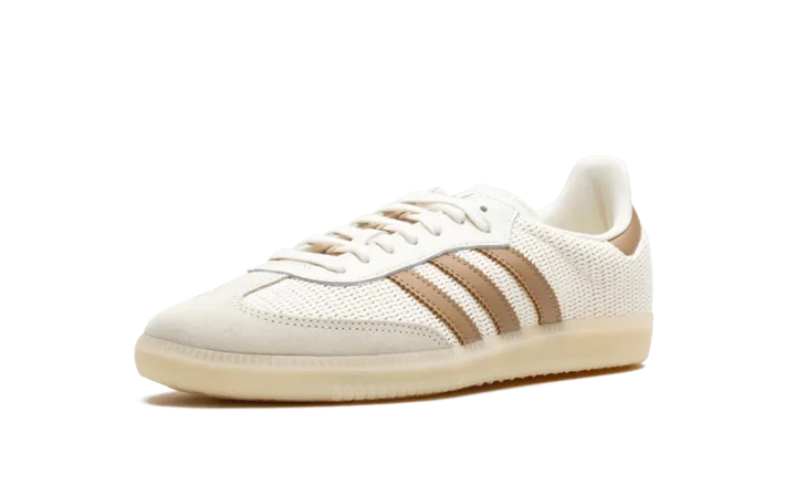 The Adidas Samba OG "Cream White Cardboard" delivers a classic look with enduring appeal. This iconic silhouette is known for its versatility and clean design, presented here in Cream White and Cardboard tones. A stylish choice for any casual occasion.