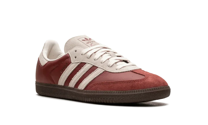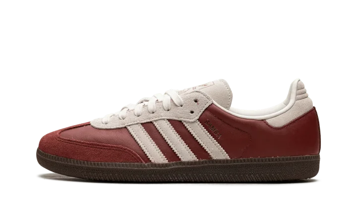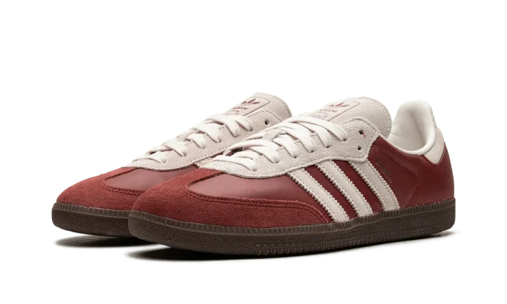 Step into a rich, sophisticated aesthetic with the Adidas Samba OG "Preloved Ruby / Cream White". This celebrated silhouette features a soft Ruby suede upper with a distinct preloved finish and creamy Off-White accents. Enjoy the comfortable fit and vintage appeal, blending a classic aesthetic with modern style for a versatile look that's perfect for any occasion.