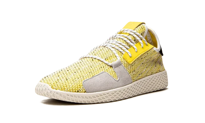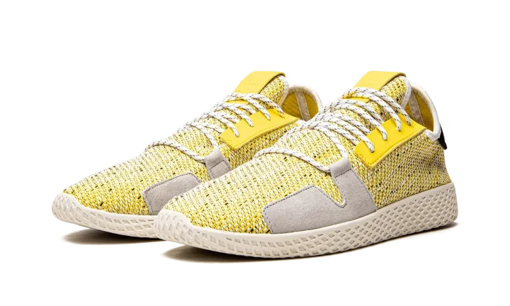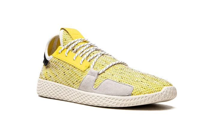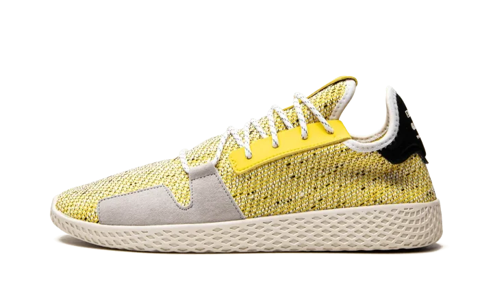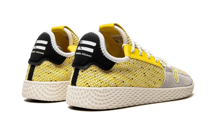 The Pharrell Williams x adidas SolarHu Tennis V2 represents a fresh direction in Pharrell's design partnership with the Three Stripes. Constructed with a one-piece textile upper, the sneaker's innovative Primeknit application combines yellow, black, and white. A lightweight patterned midsole and outsole is used on this model, and new detailing includes suede panels on the lateral and medial forefoot. A distinctive yellow leather patch is located around the eyelets. This colorway of the Pharrell Williams x adidas SolarHu Tennis V2 is inspired by the raw spirit and style of East Africa.
