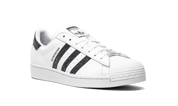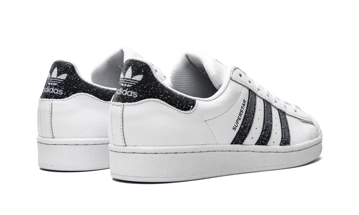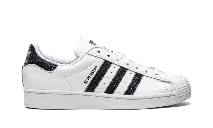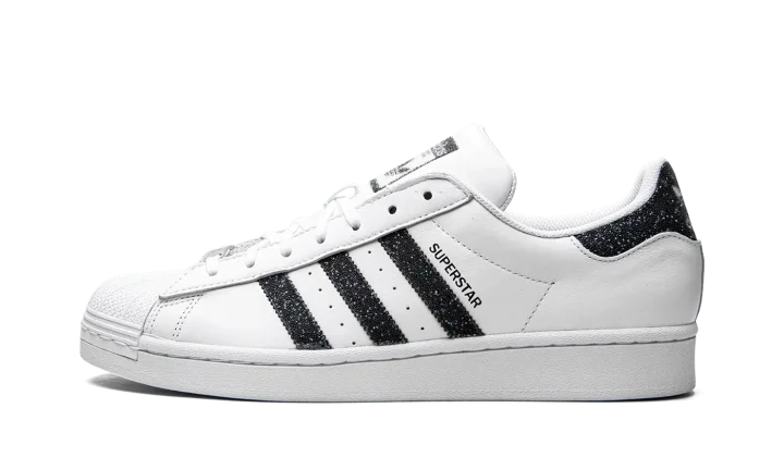 The Superstar I 'Swarovski White Black' shoe features a classic design with dazzling Swarovski crystal details, offering a luxurious and eye-catching twist on the iconic Superstar silhouette.