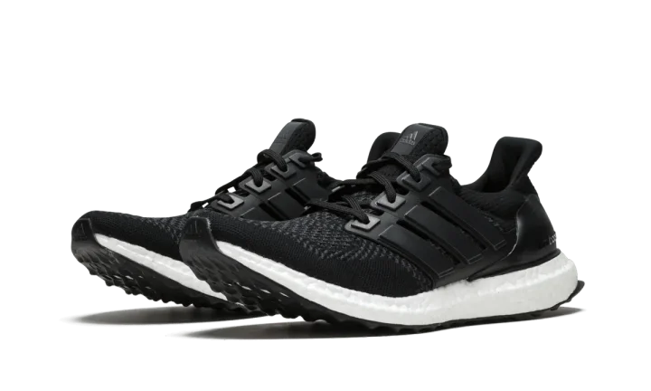 Simple yet very effective, this clean colorway of the popular Ultra Boost features a predominantly black upper with a light contrast of grey interwoven into the toe area.
