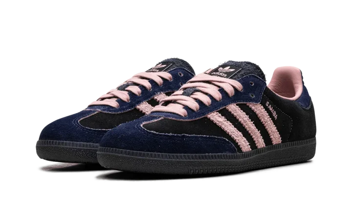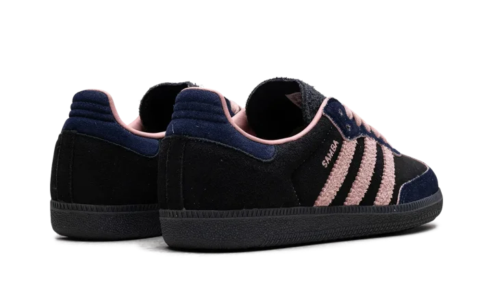 Step into a rich, sophisticated aesthetic with the Adidas Samba OG Wmns "Black / Wonder Mauve / Indigo". This celebrated women's sneaker features a black suede upper complemented by sleek Indigo Three Stripes and Wonder Mauve accents. Enjoy superior cushioning and a design that's perfect for making a stylish statement with a subtle pop of color.