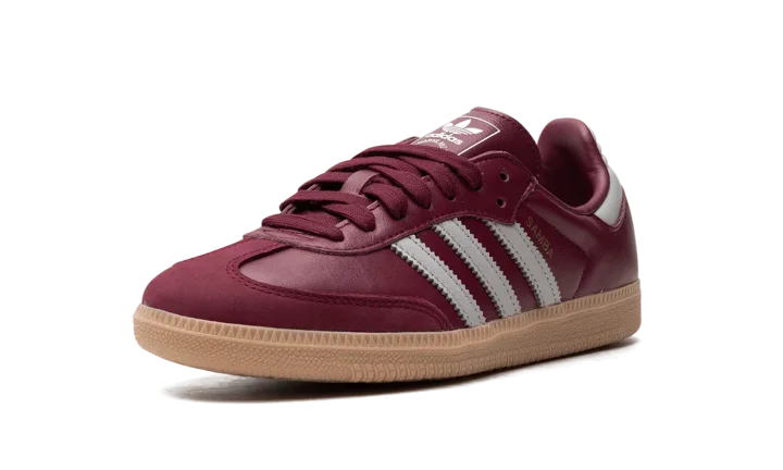 Step out in style with the Adidas Samba OG "Burgundy". This classic sneaker is presented in a deep burgundy colorway, providing a touch of refined elegance. The iconic 3-Stripes and gum rubber outsole stay true to the original design, delivering a timeless and versatile option for your wardrobe.