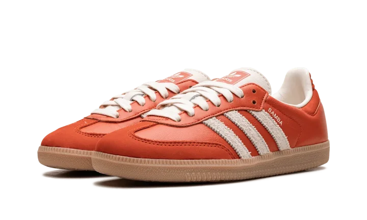 Step into a vibrant, sophisticated aesthetic with the Adidas Samba OG Wmns "Collegiate Orange / Cream White". This celebrated women's sneaker features a soft orange suede upper complemented by creamy white accents and a classic gum sole. Enjoy superior cushioning and a design that's perfect for making a stylish statement with a subtle pop of color.