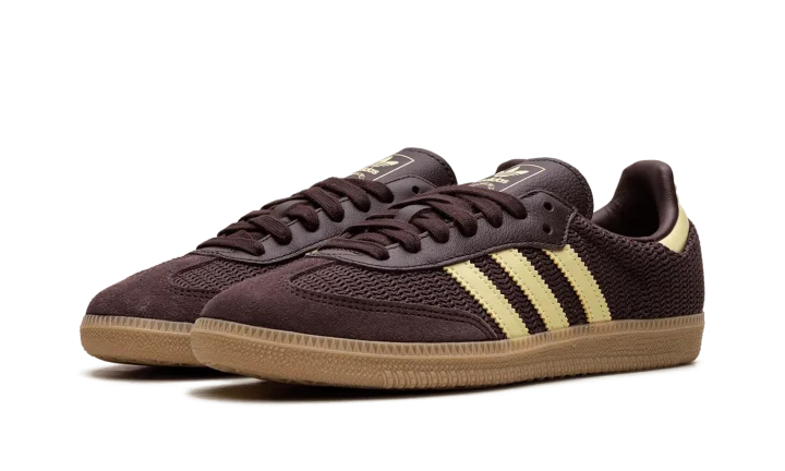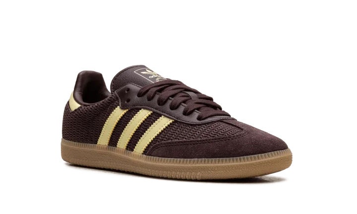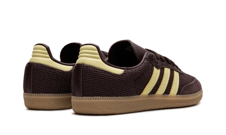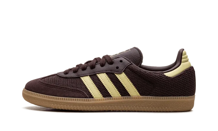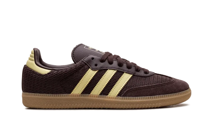 Step into a rich, sophisticated aesthetic with the Adidas Samba OG Wmns "Shadow Brown / Powder Yellow". This celebrated women's sneaker features a soft Shadow Brown suede upper complemented by delicate Powder Yellow accents and a classic gum sole. Enjoy superior cushioning and a design that's perfect for making a stylish statement with a subtle pop of color.
