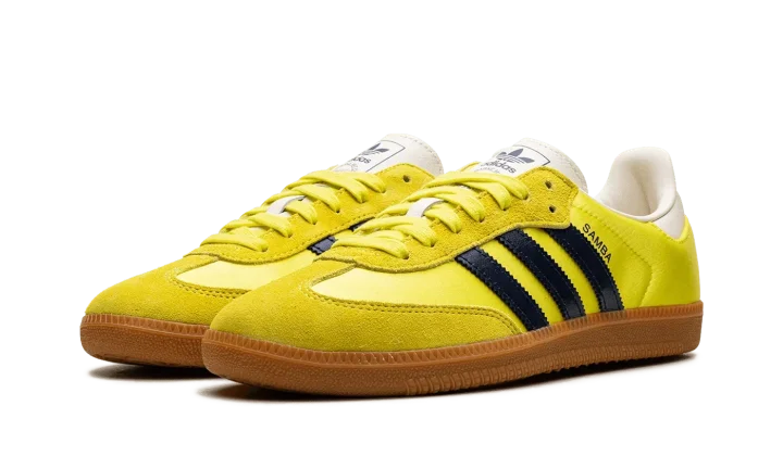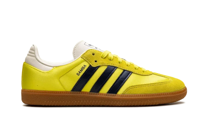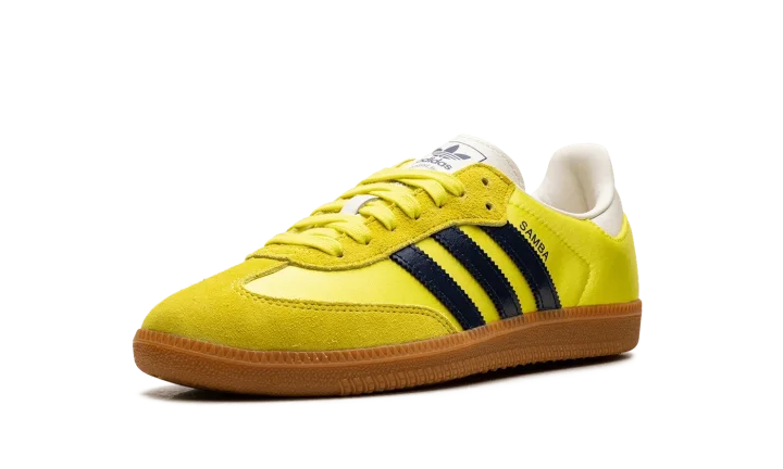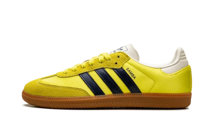 Step into a vibrant, high-contrast aesthetic with the Adidas Samba OG Wmns "Shock Yellow / Night Indigo". This celebrated women's sneaker features a soft Shock Yellow suede upper complemented by deep Night Indigo leather accents and a classic gum sole. Enjoy superior cushioning and a design that's perfect for making a stylish statement with a powerful pop of color.