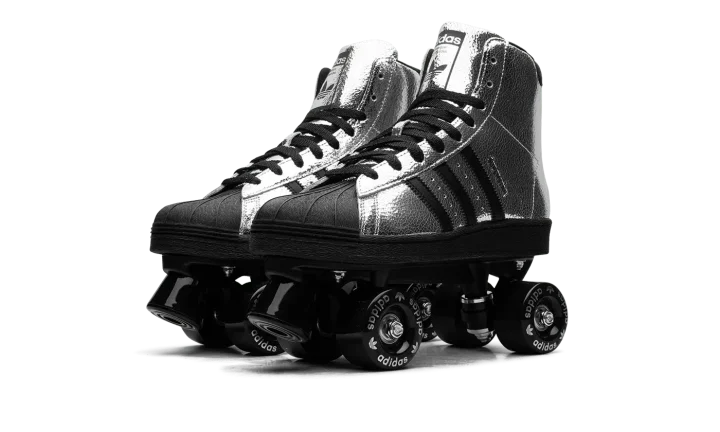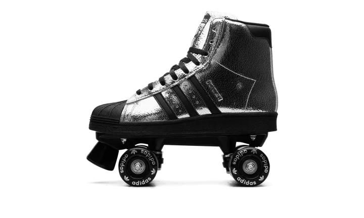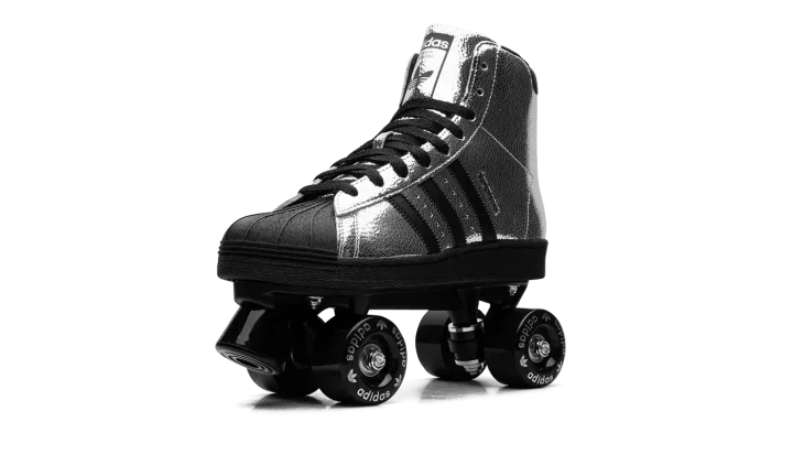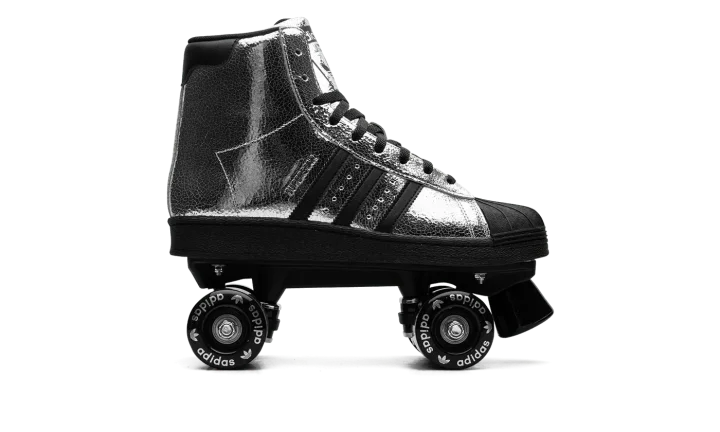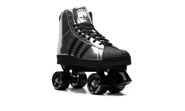 The Superstar 82 Skate WMNS 'Silver Metallic' shoe features a sleek silver metallic finish, offering a stylish and durable option for skateboarding or everyday wear.