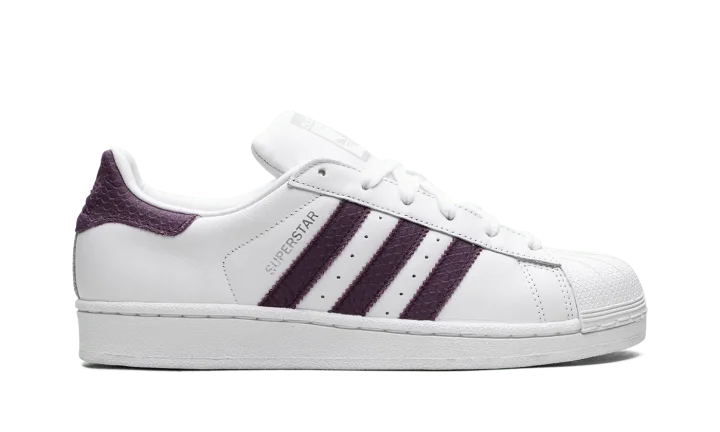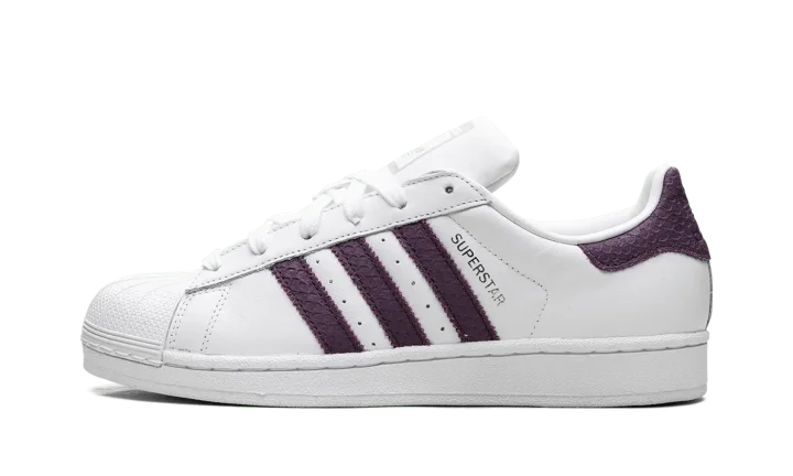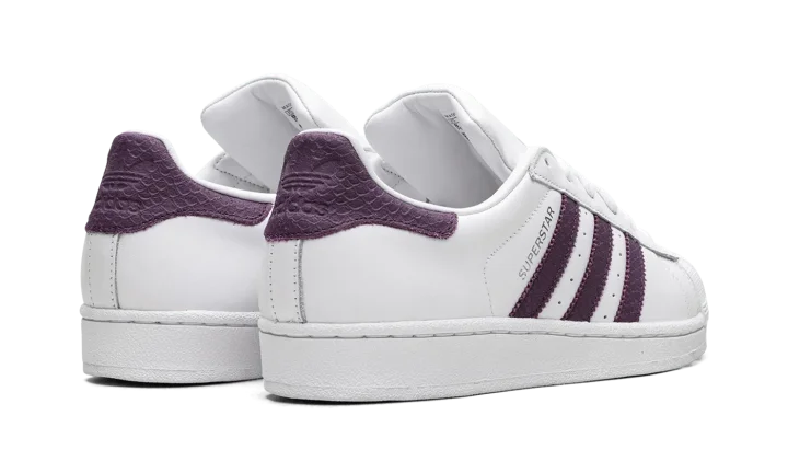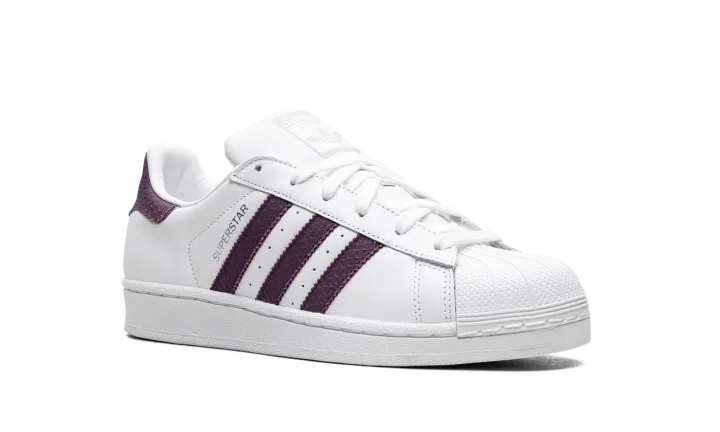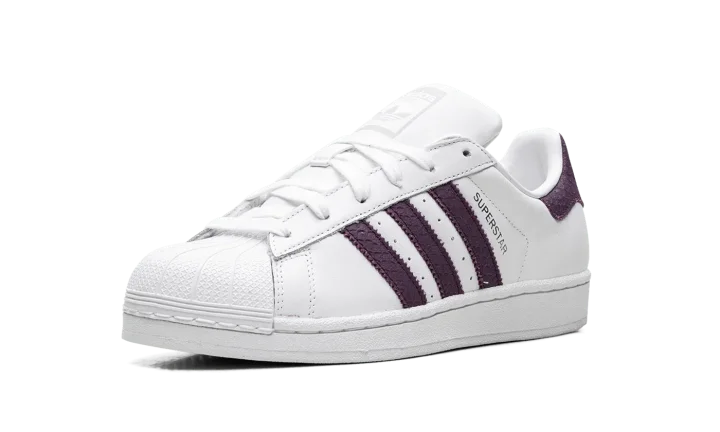 The Superstar WMNS 'White Red Night' shoe features a classic design with a clean white base, bold red accents, and subtle night-inspired details, offering a versatile and stylish addition to any sneaker collection.
