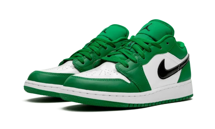 The Air Jordan 1 Low GS "Pine Green" is the slimmed down youth sizing of Michael Jordan's first signature shoe. The colorway brings to mind the team uniform colors of the Boston Celtics, which were a perennial opponent of Jordan's throughout his career with the Chicago Bulls. Green leather overlays are found on the forefoot, collar, and eyelets. The color reappears on the heel and nylon tongue while the perforated toe and mid-panel are finished off with a crisp white leather. A bold black leather Swoosh covers the mid-panel and a black Wings logo is printed onto the heel. Mini Jumpman branding is located on the tongue to complete the look of the grade school sizing of the Air Jordan 1 "Pine Green."