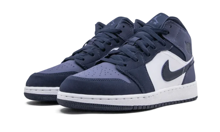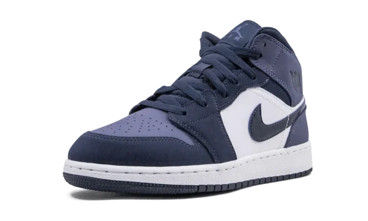 The Air Jordan 1 Mid GS "Sanded Purple" is the youth sizing of the purple and obsidian-colored version of Michael Jordan's first signature shoe. Slimmed down for the feet of children, the "Sanded Purple" look features a purple nubuck perforated toe that is contrasted by obsidian blue overlays on the forefoot and toe cap. A dark blue Swoosh on the mid-panel pops against the white leather base of the shoe. Jordan Brand opts for additional purple nubuck on both the collar and heel. Black Wings detailing is found on the collar.