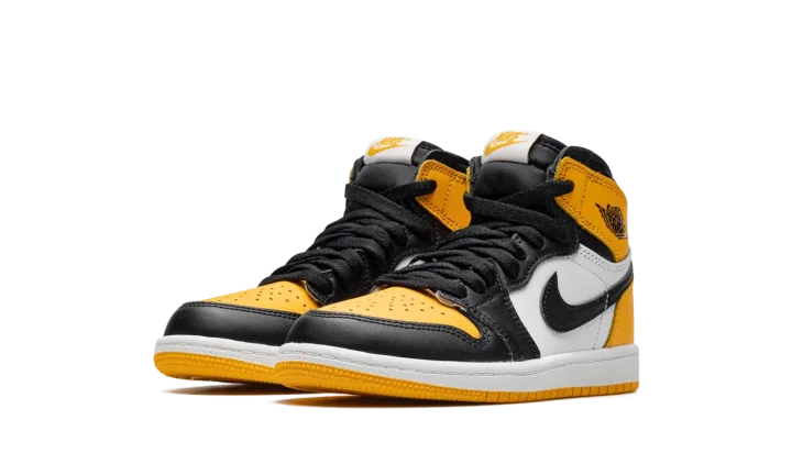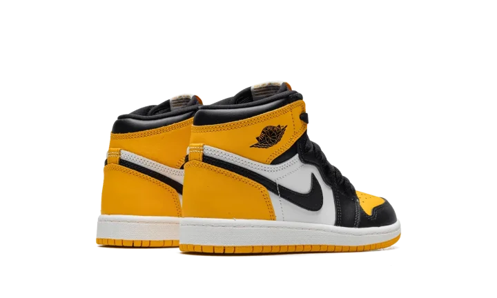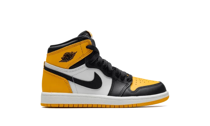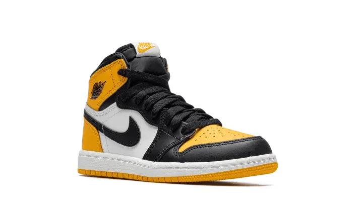 The Air Jordan 1 High OG PS "Taxi" is the preschool sizing of Michael Jordan's first signature shoe in a colorway inspired by the iconic "Black Toe" Jordan 1 from 1985. The "Taxi," also known as "Yellow Toe," features a yellow leather is found on the perforated toe and black leather is found on the toe cap, forefoot, and eyelets. The black leather around the toe is inspired by the original Jordan 1 "Black Toe" from 1985. Release date: August 13, 2022