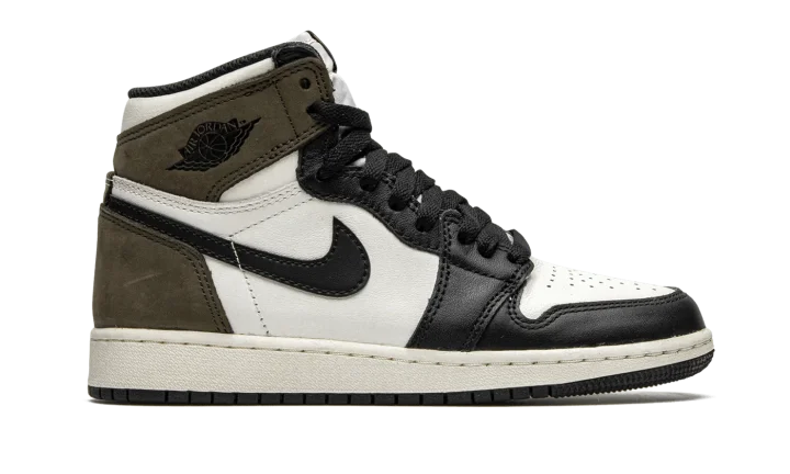 The Air Jordan 1 GS "Dark Mocha" is the youth sizing of the neutral based colorway of Michael Jordan's first signature shoe. The "Dark Mocha" colorway is undoubtedly inspired by Travis Scott's hit Air Jordan 1 collection of 2019. Though unlike the Houston rapper's collaboration, the "Dark Mocha" features smooth black leather detailing on the forefoot, eyelets, and toe cap. The mid-panel, collar, and perforated toe display a white leather construction. A black leather Swoosh dots the mid-panel and a black "Wings" logo is placed on the brown nubuck collar. The earth toned hue appears on the heel, as well. Finishing touches include a white nylon tongue, black laces, and black "Nike Air" on the tongue tag. Release date: October 31, 2020.