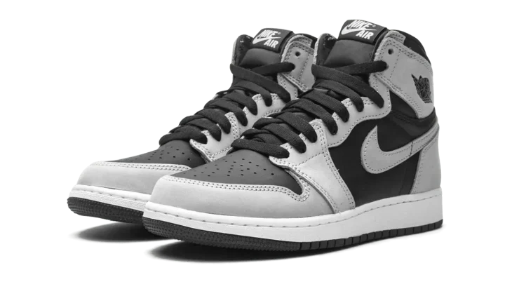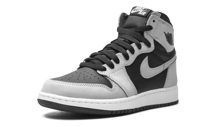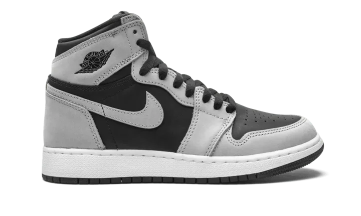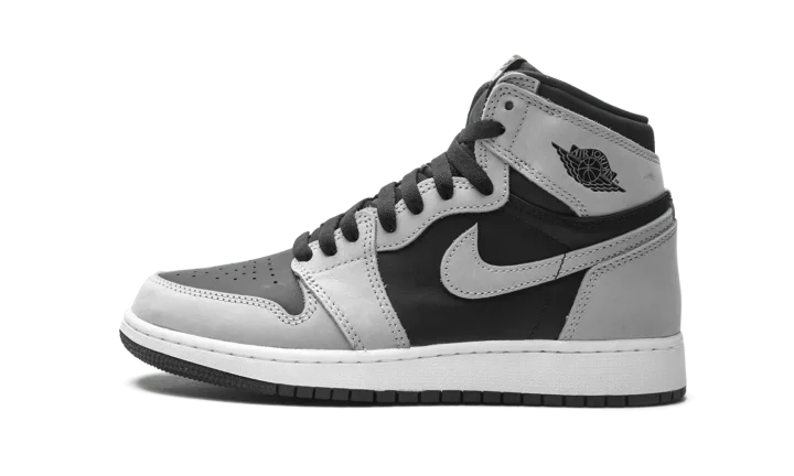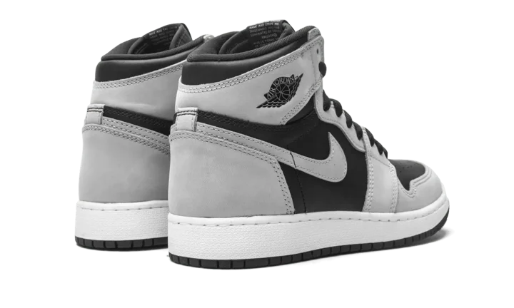 The Air Jordan 1 High "Shadow 2.0" is the youth sizing of the colorway that is inspired by the original black-and-grey "Shadow" edition of Michael Jordan's first signature shoe. The "Shadow 2.0" is an updated edition of the versatile colorway. On the "Shadow 2.0," black leather appears on the mid-panel and on the perforated toe. The first "Shadow" featured grey leather on the toebox. Moreover, the "Shadow 2.0" dons grey leather on the forefoot and eyelets. The "OG" "Shadow" displayed black leather on those panels. Grey leather can be found on the collar, heel, and Swoosh. A black "Wings" logo graces the collar and grey "Nike Air" on the tongue tag on the black nylon tongue. It should be noted that the grey leather panels found on the "Shadow 2.0" are lighter in color than the original grey leather on the first "Shadow." Release date: May 15, 2021.