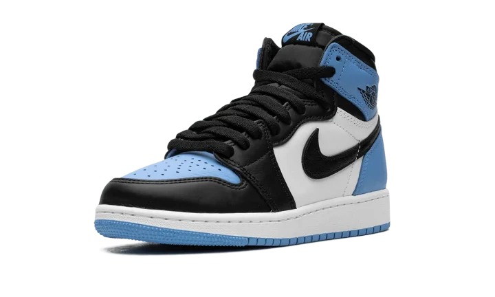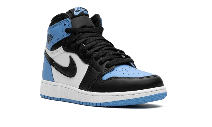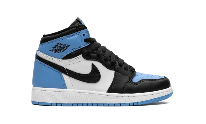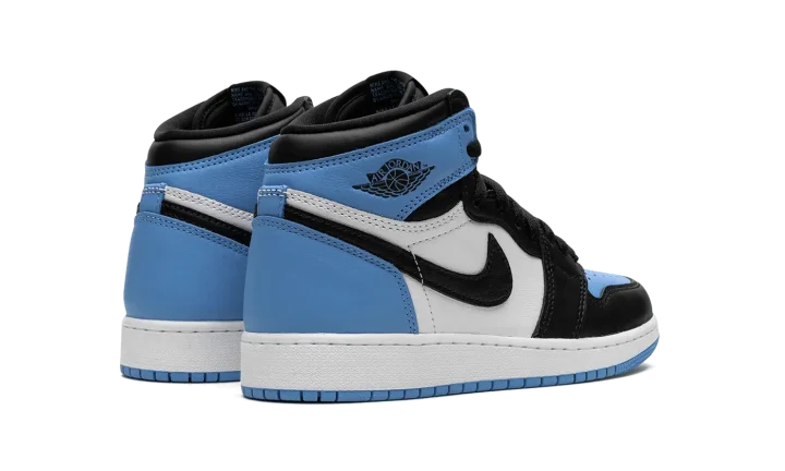 The Air Jordan 1 Retro High OG GS "UNC Toe" is the youth sizing of Michael Jordan's first signature shoe in a colorway inspired by the model's original "UNC" and "Black Toe" styles. On the "UNC Toe," the Jordan 1 features a University Blue leather perforated toe that's contrasted with black leather overlays on the toe cap, forefoot, and eyelets. The shoe also features white leather on the mid-panel and University Blue leather on the collar and heel. A black leather Swoosh and black "Wings" logo can be found on the mid-panel and collar, respectively. The University Blue accenting is a nod to Jordan's alma mater, the University of North Carolina, as well as the Jordan 1's original "UNC" colorway. Release date: July 22, 2023
