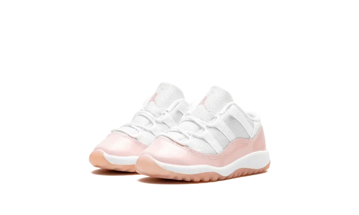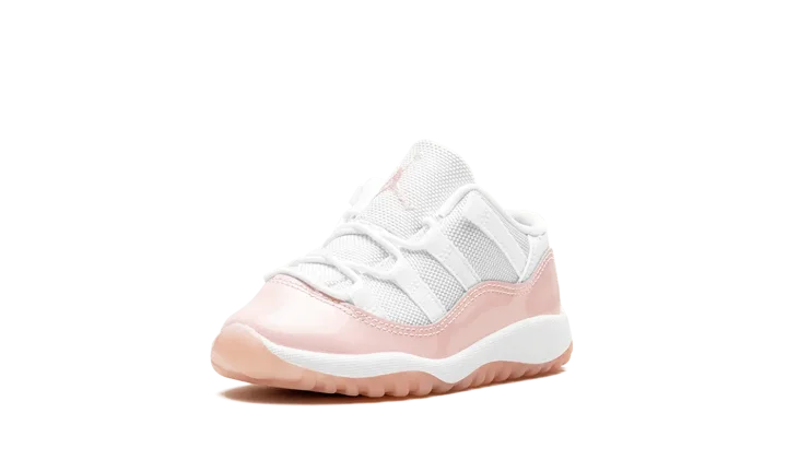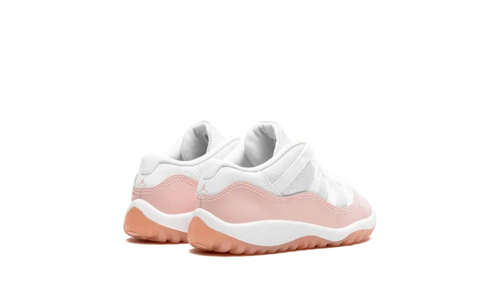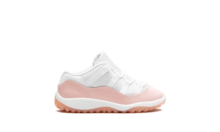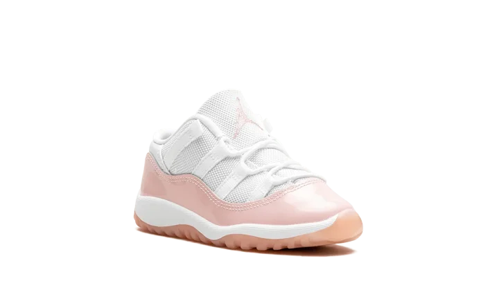 The Air Jordan 11 Low TD "Legend Pink" is the preschool sizing of Michael Jordan's eleventh signature shoe with a summer-ready design. The "Legend Pink" Jordan 11 Low has the same color block as the model's original "Concord" colorway, but with pink accenting instead of black. Specifically, the shoe features a white mesh upper and a glossy Legend Pink patent leather mudguard. A pink embroidered Jumpman and a "Jumpman Jordan" tag appear on the tongue. On the heel, more Legend Pink accenting can be found on the "23" and Jumpman logos. A semi-translucent Legend Pink rubber outsole completes the look.